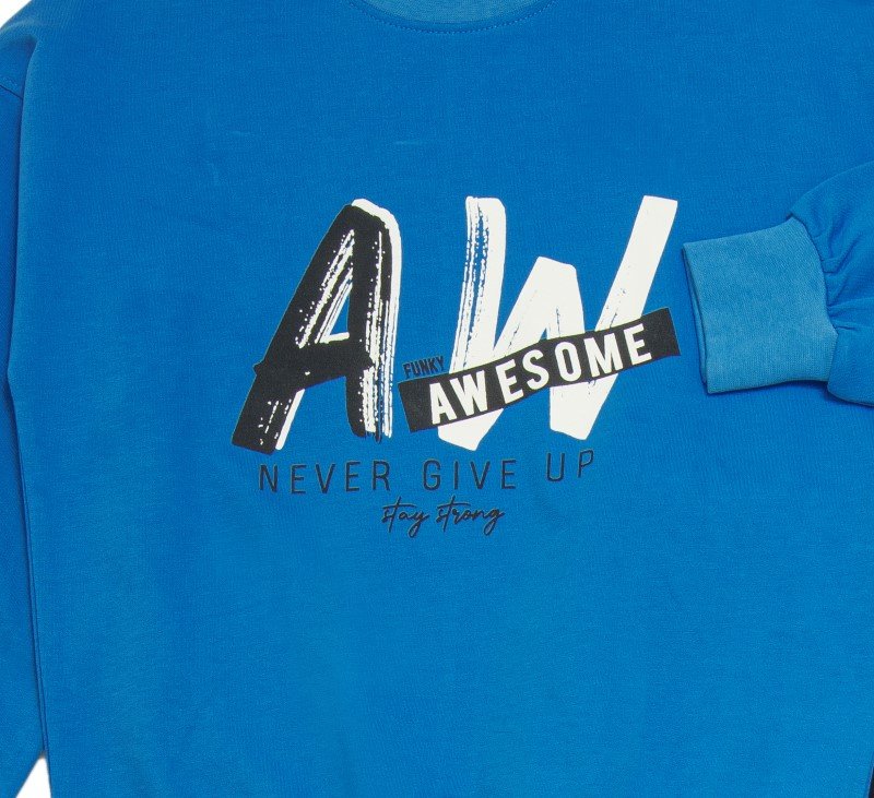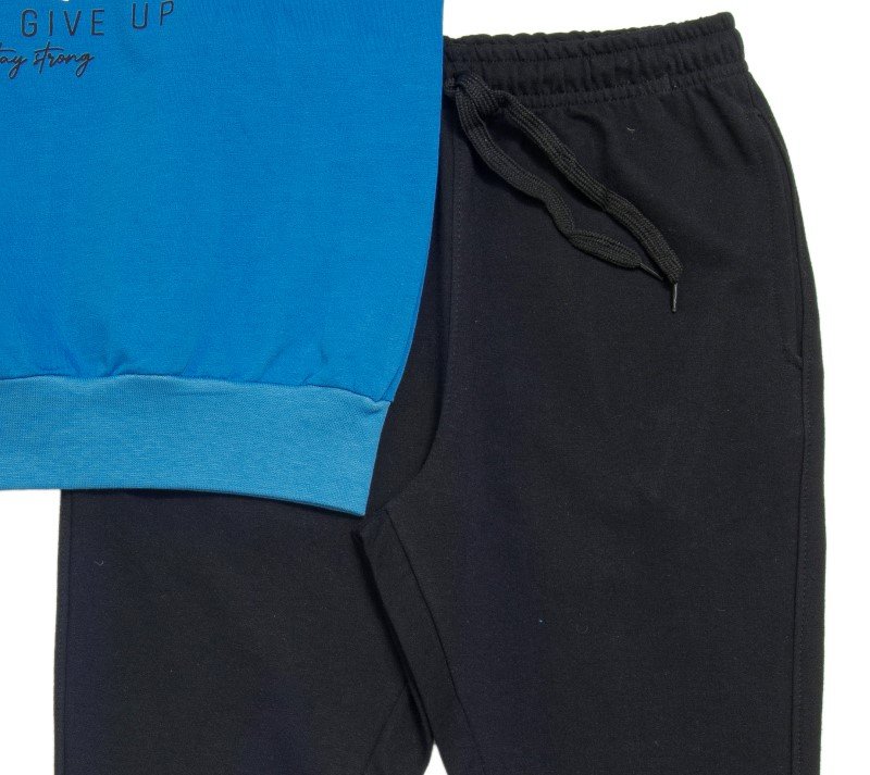 Φόρμα φούτερ για αγόρι από 6 έως 16 ετών, μπλούζα σε κυανό χρώμα με τύπωμα και παντελόνι σε μαύρο χρώμα. Ποιότητα 100% cotton.