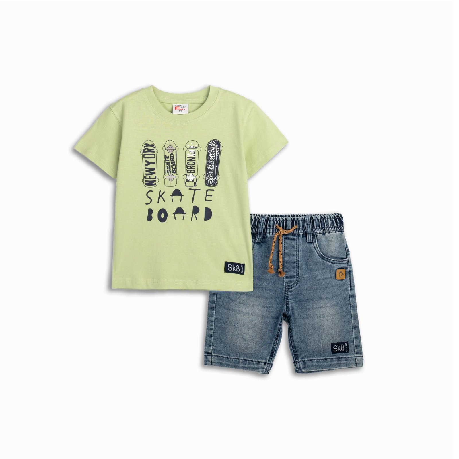 Σετ φούτερ τζιν bebe για αγόρι από 1 έως 6 ετών σε χρώμα αχλαδί και μπλε τζιν βερμούδα. Ποιότητα 100% COTTON+98% COTTON-2% ELASTAN