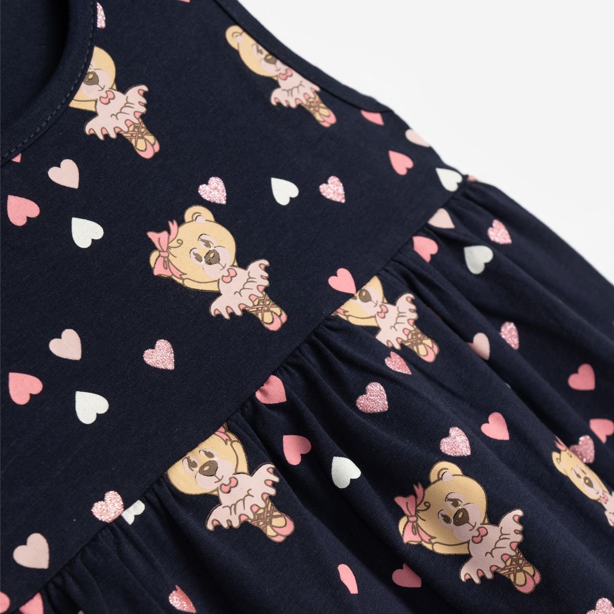 Φόρεμα κάλτσα λύκρα για bebe κορίτσι από 1 έως 6 ετών σε χρώμα μπλε με ολόσωμο τύπωμα. Ποιότητα 95% cotton-5% lycra.