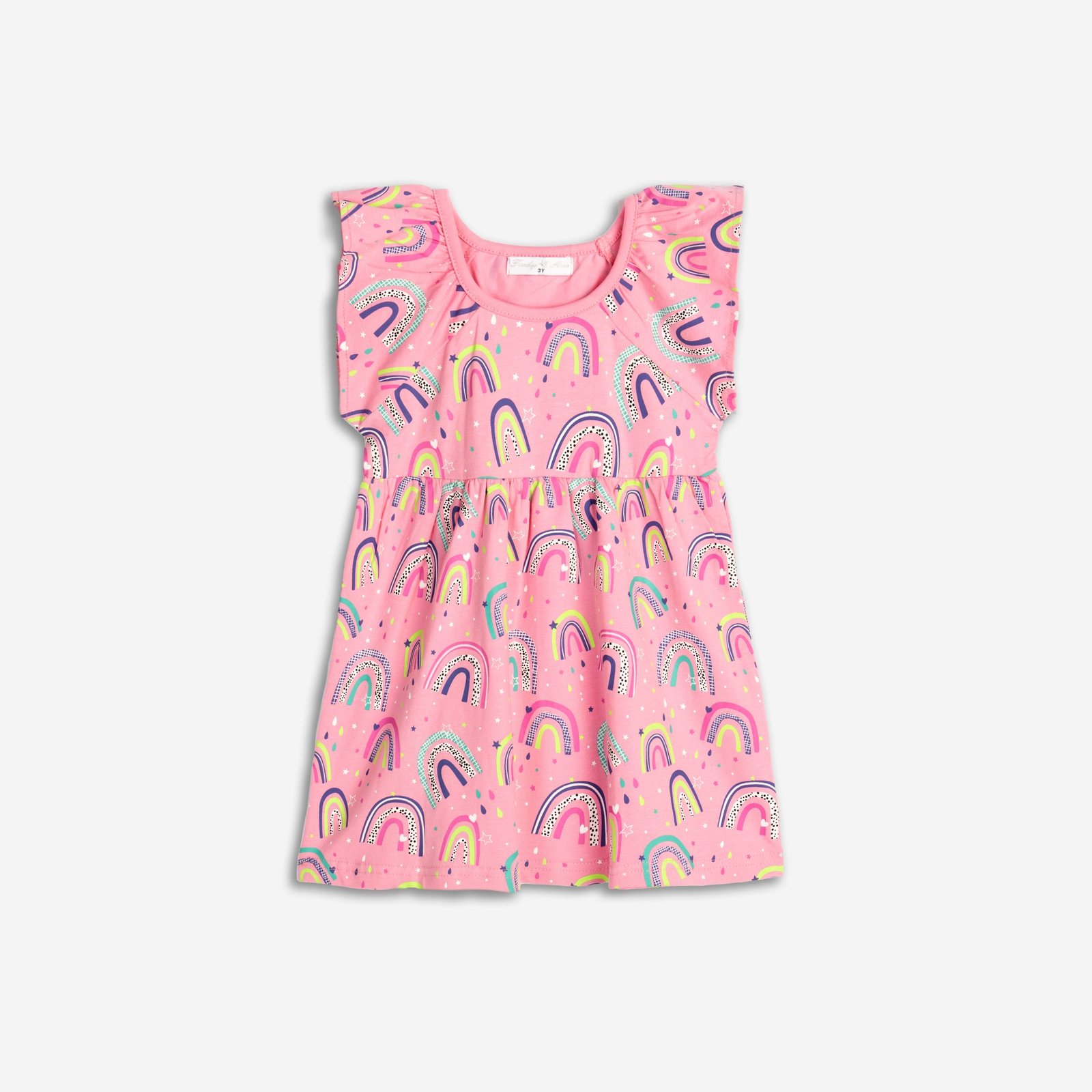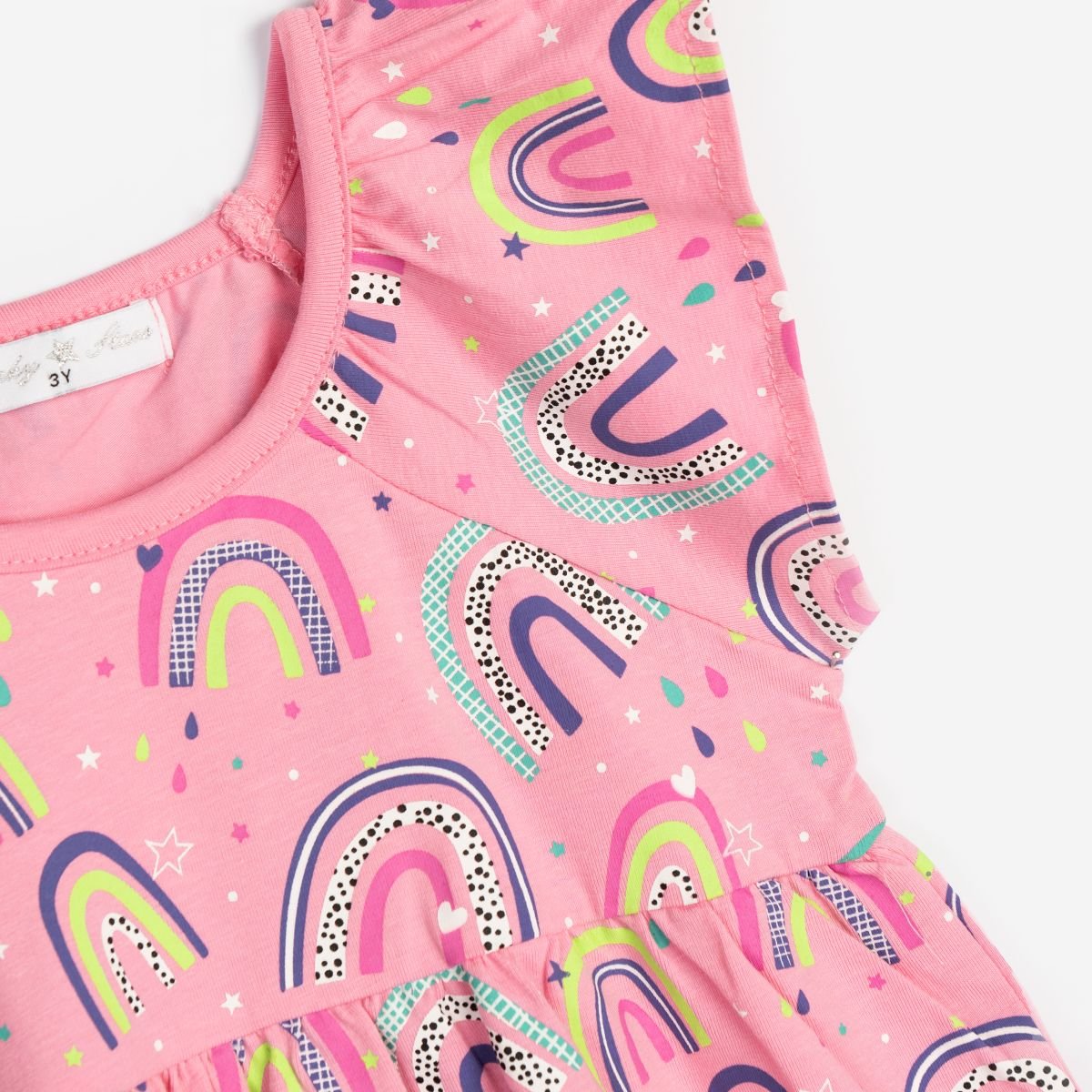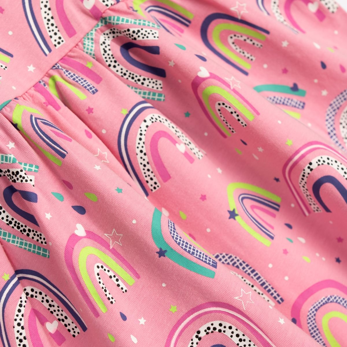 Φόρεμα κάλτσα λύκρα για bebe κορίτσι από 1 έως 6 ετών σε χρώμα έντονο ροζ με ολόσωμο τύπωμα. Ποιότητα 95% cotton-5% lycra.