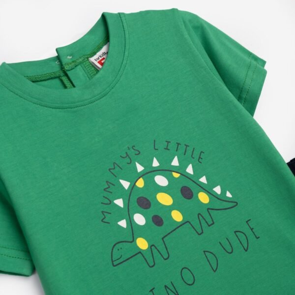 Σετ βερμούδα για αγόρι από 6 έως 24 μηνών, μπλούζα κμ σε χρώμα golf green , βερμούδα σε χρώμα μπλε . Ποιότητα 100% cotton.