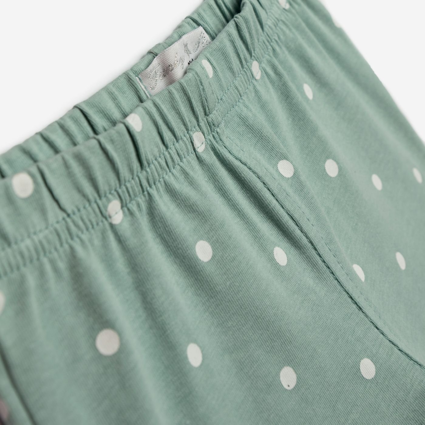 Σετ σορτς για μηνών κορίτσι από 6 έως 24 μηνών, μπλούζα σε φωσφορούχο σομόν χρώμα με τύπωμα, σορτς σε χρώμα φυστικί με ολόσωμο τύπωμα . Ποιότητα 95% cotton-5% lycra.
