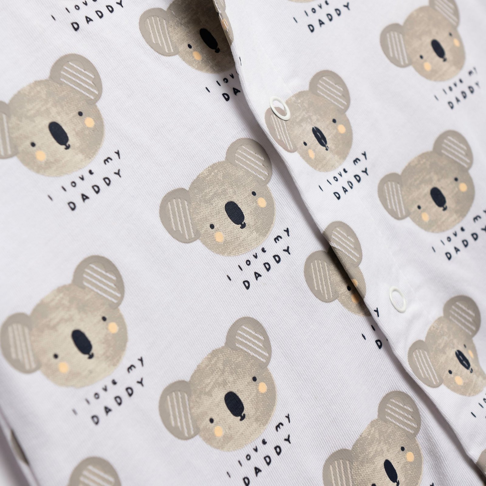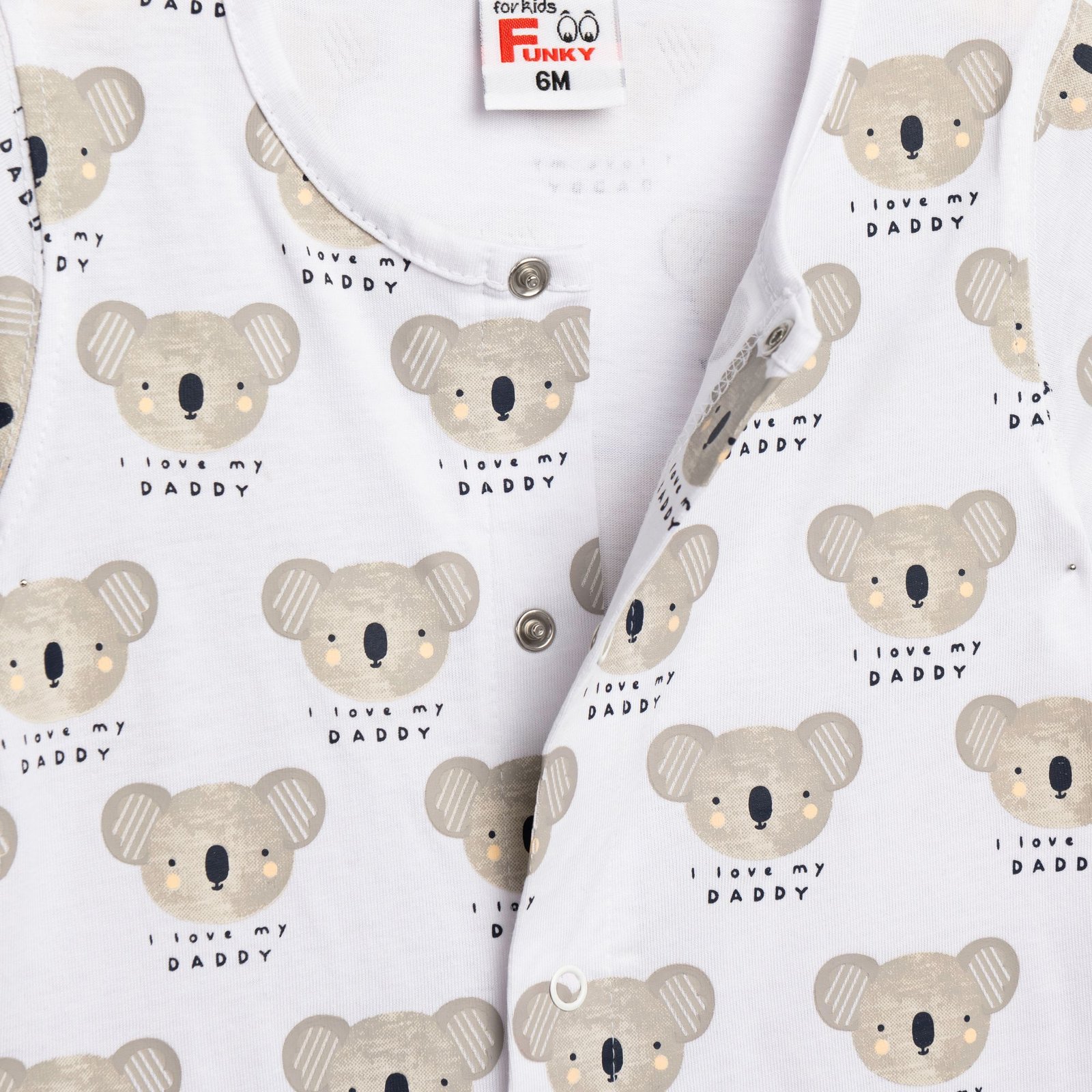 Φορμάκι κοντομάνικο κάλτσα με τύπωμα (κοάλα) allover σε χρώμα λευκο για αγόρι βρεφανάπτυξη . Ποιότητα 100% COTTON