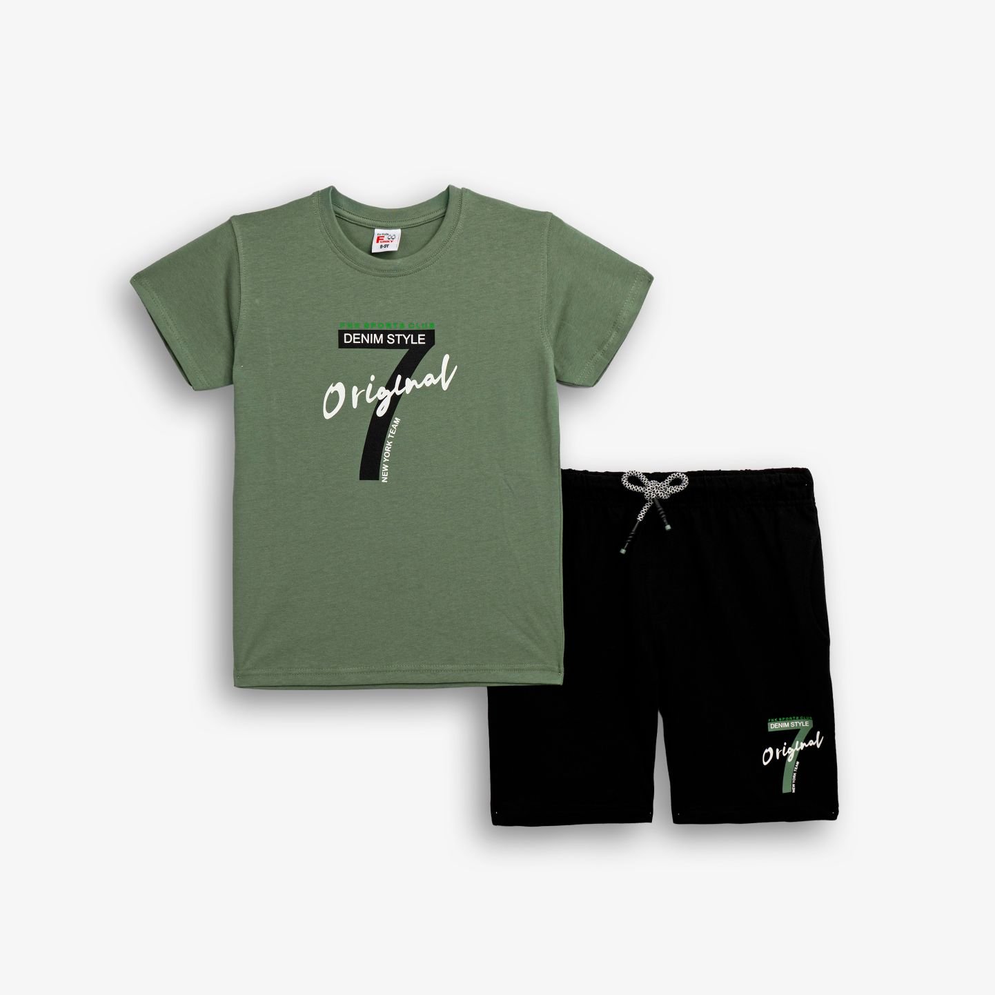 Σετ με μπλούζα κοντομάνικη με τύπωμα (νούμερο 7) και βερμούδα φούτερ με τύπωμα σε χρώμα garden/μαύρο με τύπωμα για αγόρι 6-16 ετών. Ποιότητα 100% cotton.