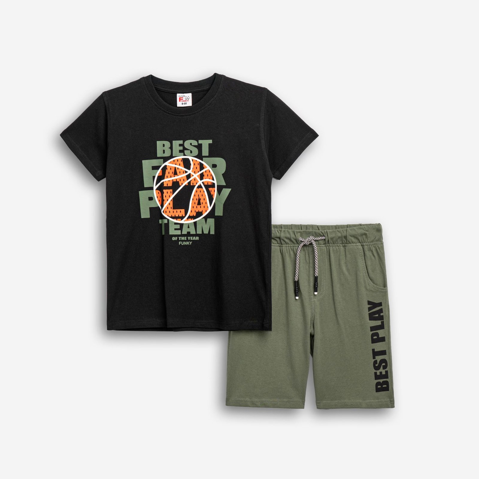 Σετ μακό κοντομάνικη μπλούζα με τύπωμα (best play) και βερμούδα με τύπωμα σε χρώμα μαύρο/χακί για αγόρι 6-16 ετών . Ποιότητα 100% COTTON.