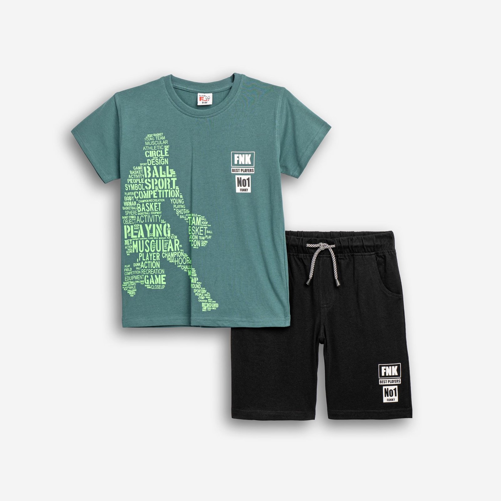 Σετ μακό κοντομάνικη μπλούζα με τύπωμα (FNK best players) και βερμούδα με τύπωμα σε χρώμα deep lake/μαύρο για αγόρι 6-16 ετών. Ποιότητα 100% cotton.