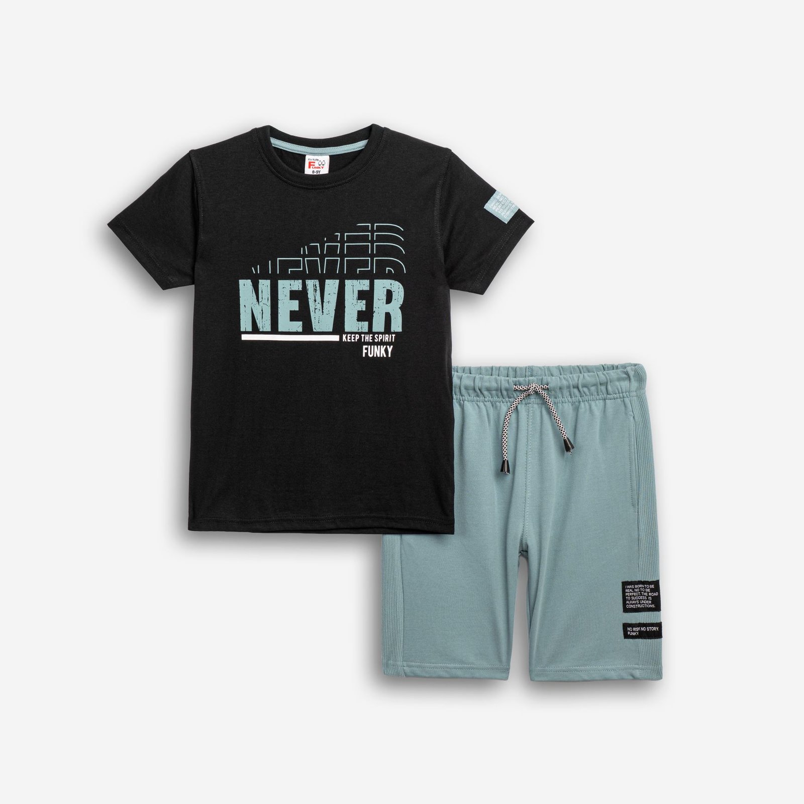 Σετ κοντομάνικη μπλούζα με τύπωμα (never) και βερμούδα φούτερ με τύπωμα σε χρώμα μαύρο/storm blue για αγόρι 6-16 ετών . Ποιότητα 100% cotton.