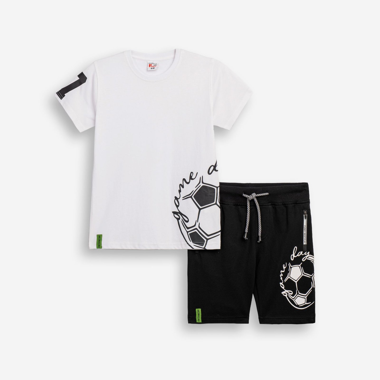 Σετ κοντομάνικη μπλούζα με τύπωμα (game day) και βερμούδα φούτερ με τύπωμα σε χρώμα λευκό/μάυρο για αγόρι 6-16 ετών. Ποιότητα 100% cotton.