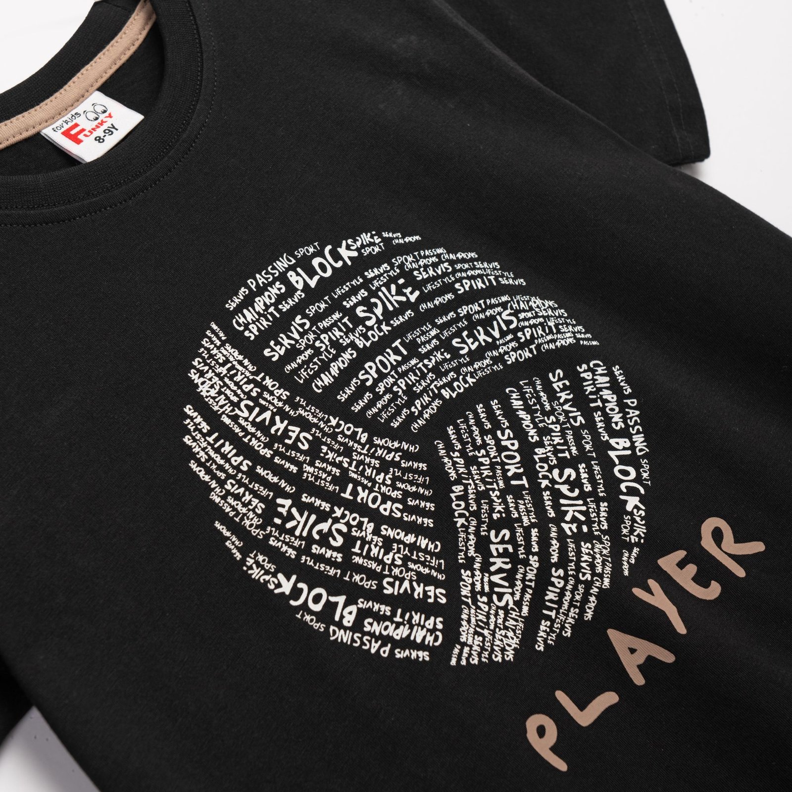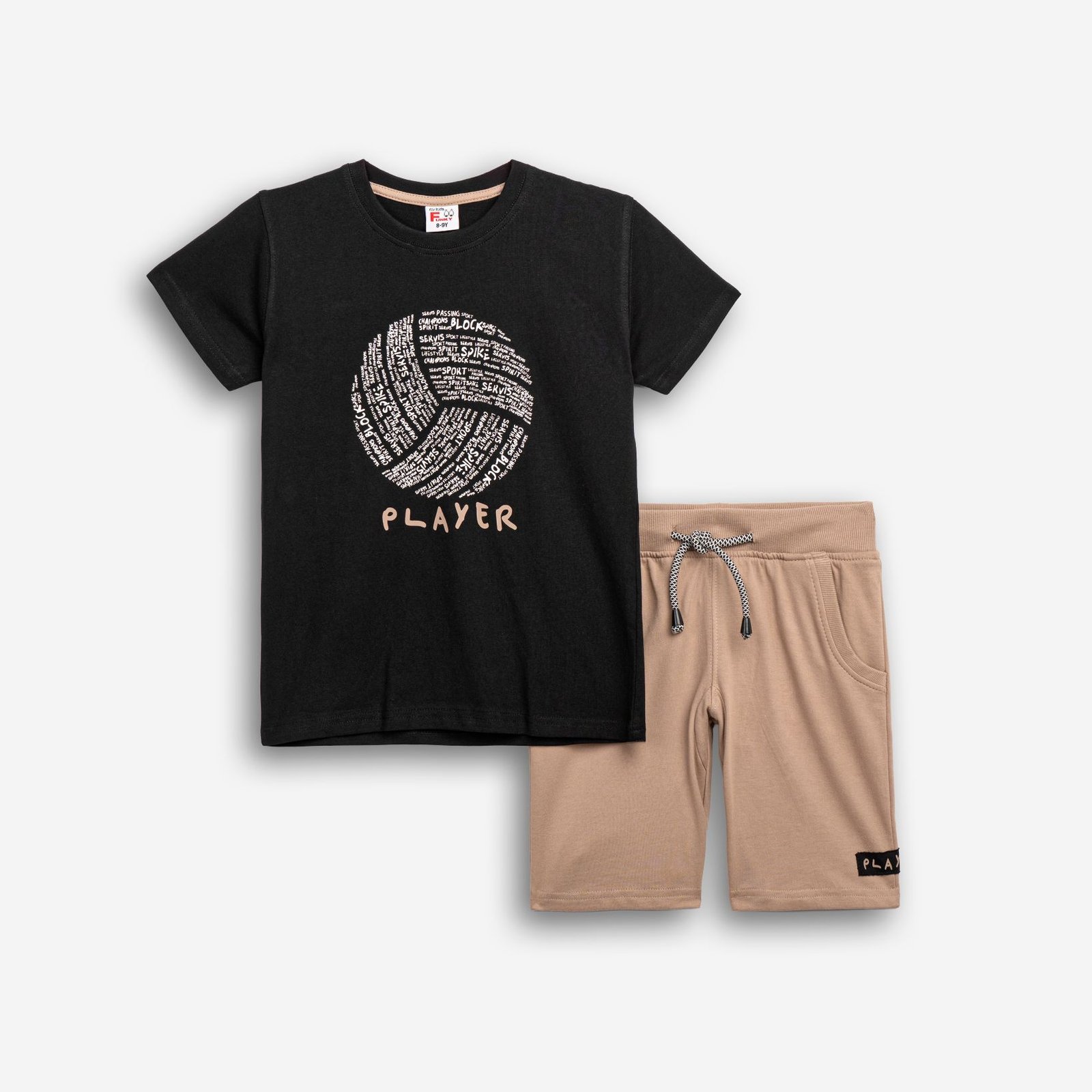 Σετ κοντομάνικη μπλούζα με τύπωμα (volley player) και βερμούδα φούτερ με τύπωμα σε χρώμα μαύρο/αμύγδαλο για αγόρι 6-16 ετών. Ποιότητα 100% cotton.