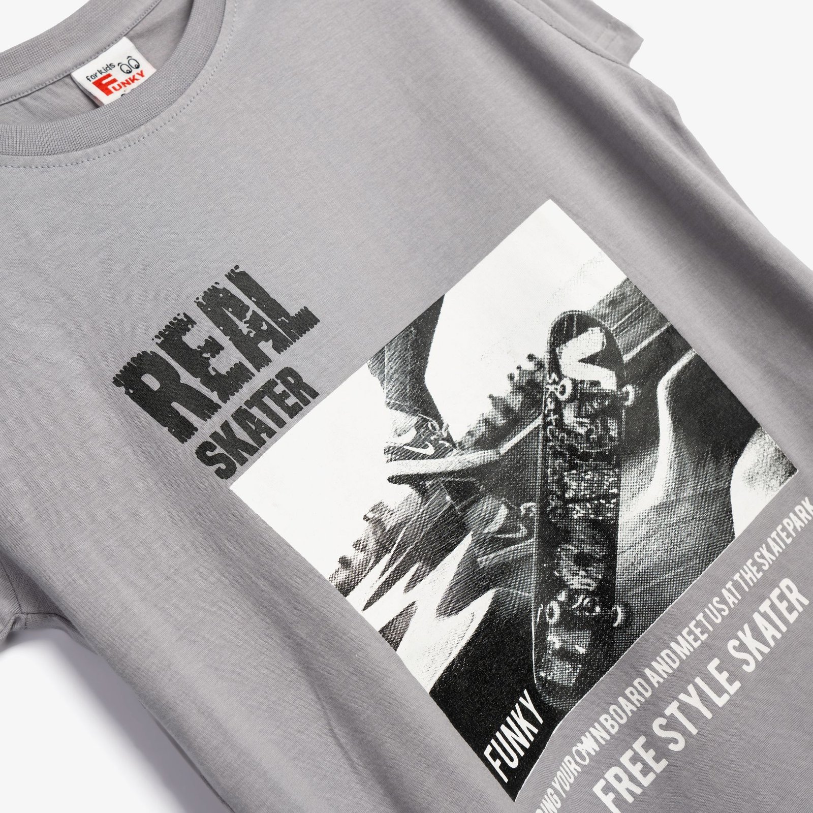 Σετ κοντομάνικη μπλούζα με τύπωμα (real skater) και βερμούδα φούτερ με τύπωμα σε χρώμα mirage grey/μαύρο για αγόρι 6-16 ετών