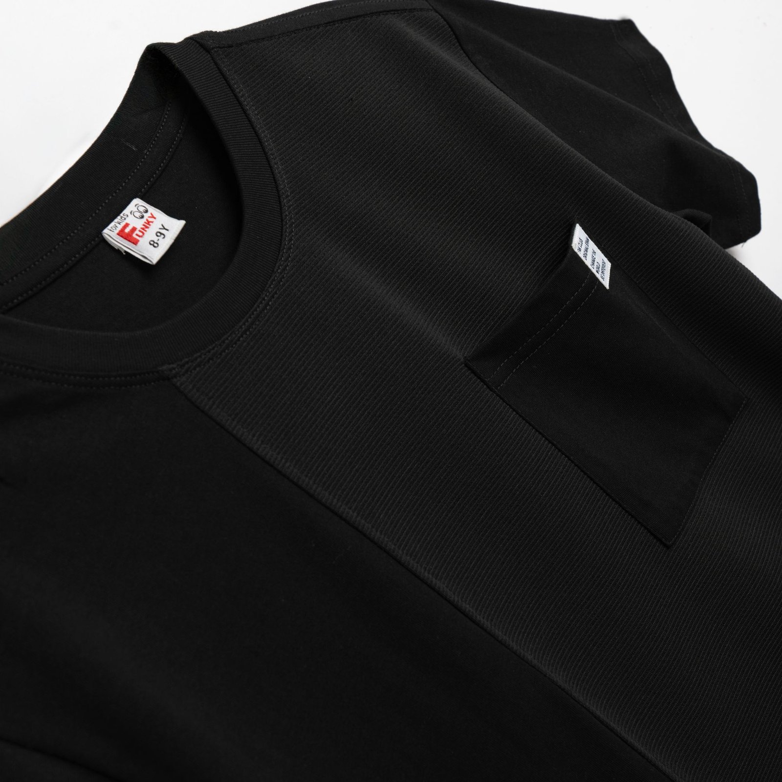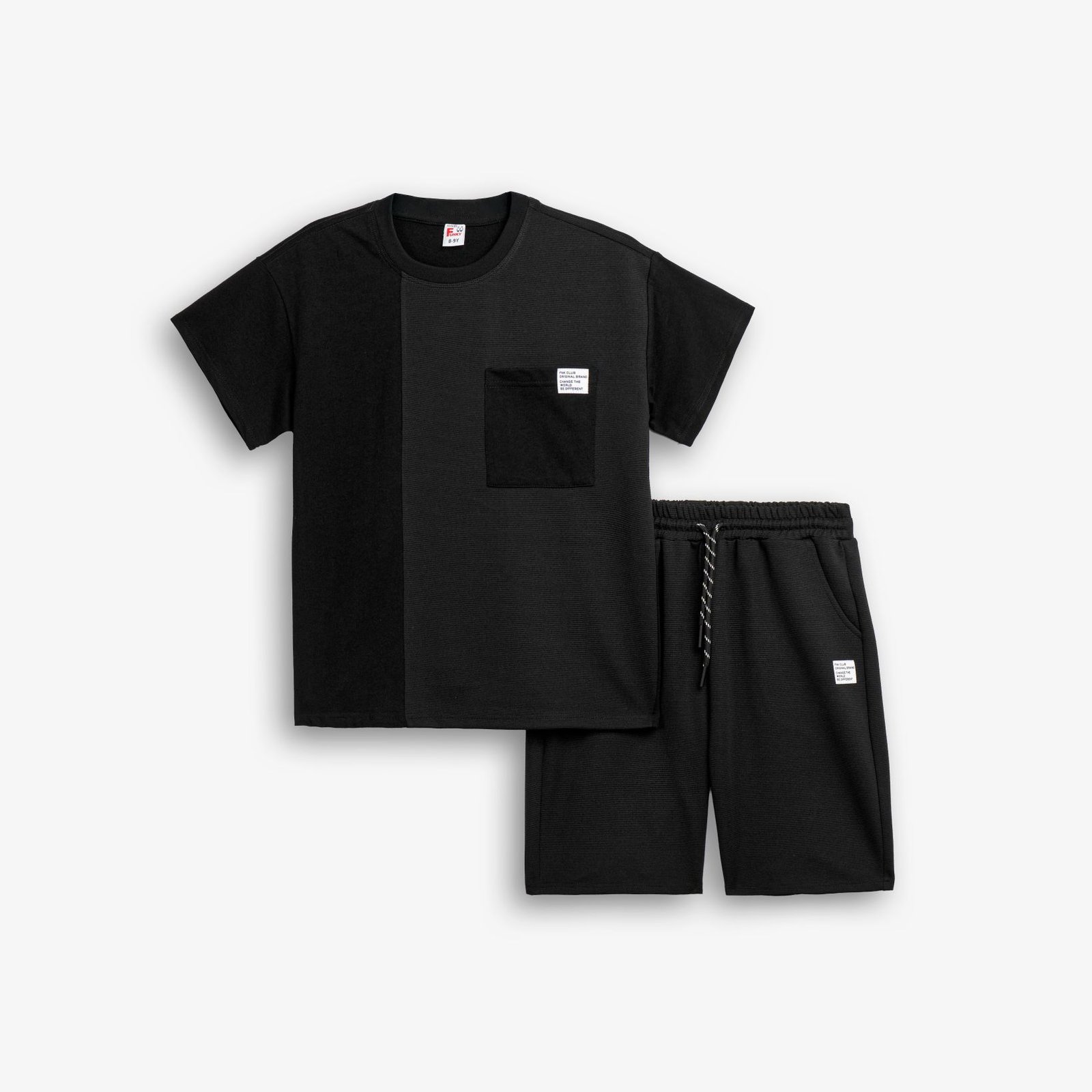 Σετ κοντομάνικη μπλούζα με τσεπάκι και βερμούδα σε χρώμα μαύρο/μαύρο για αγόρι 6-16 ετών . Ποιότητα 100% COTTON+95% POLYESTER-5% ELASTAN.