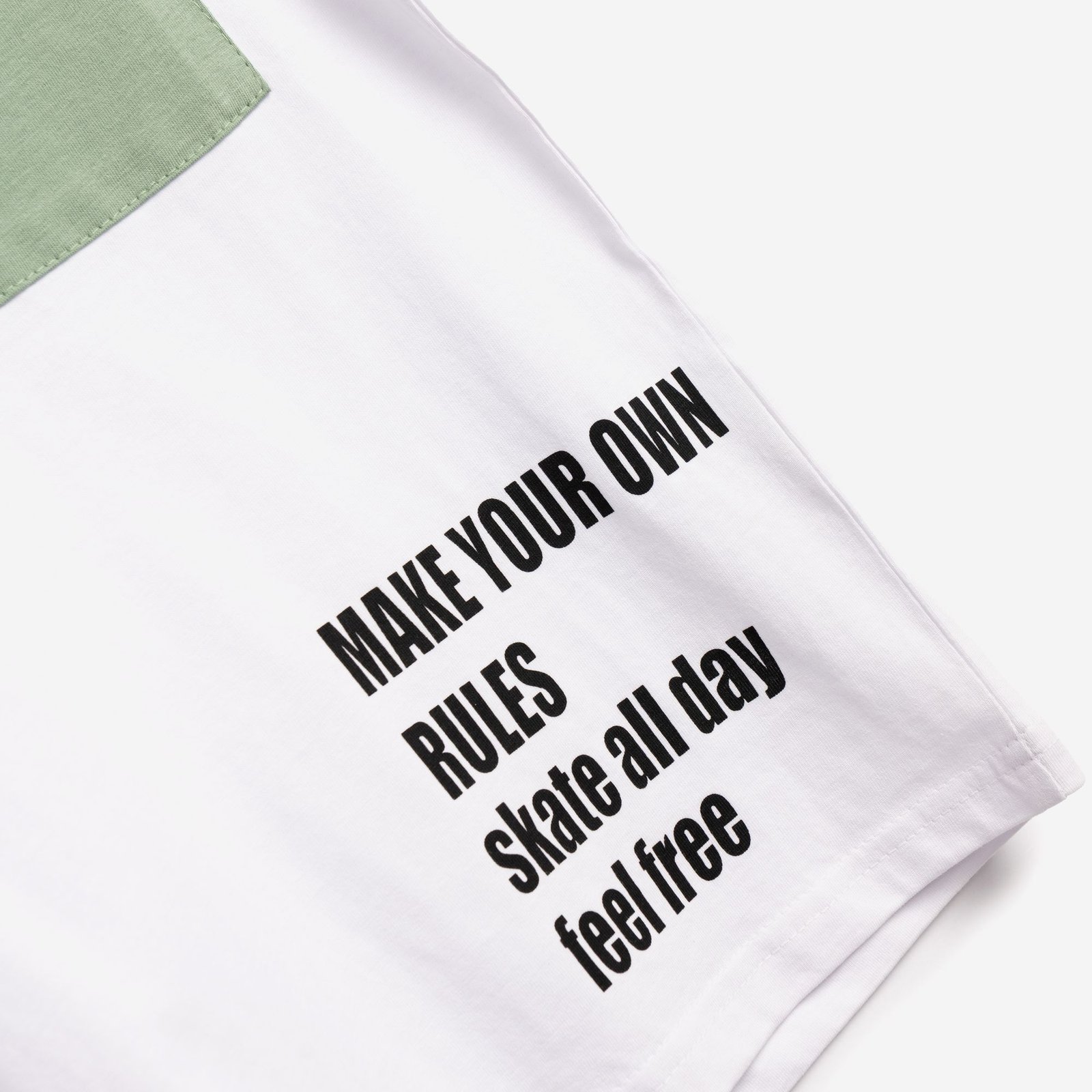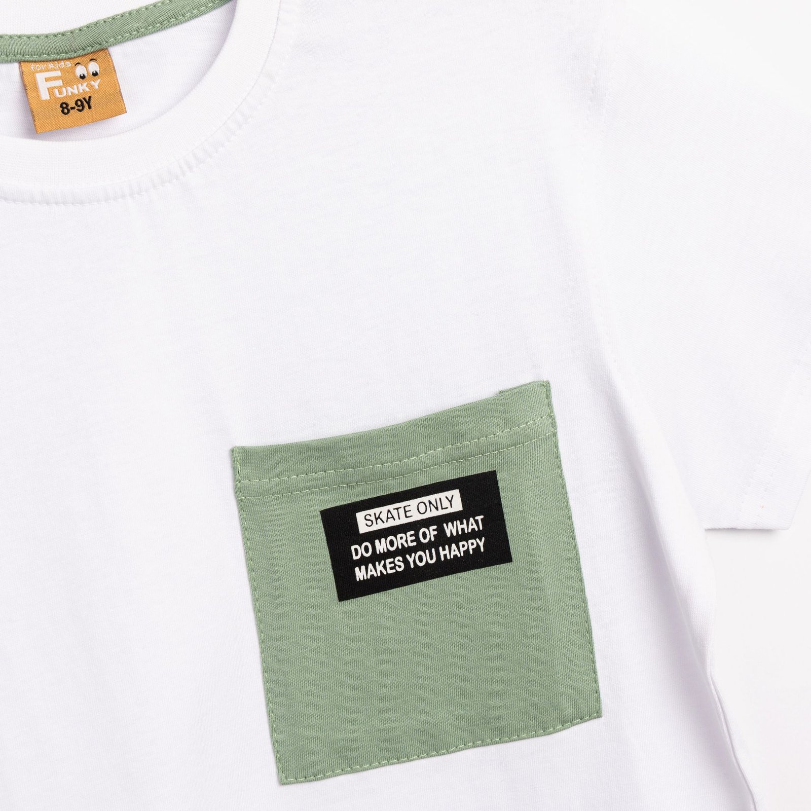 Μπλούζα κοντομάνικη κάλτσα με τύπωμα και τσεπάκι σε χρώμα λευκό-βασιλικός για αγόρι 6-16 ετών . Ποιότητα 100% cotton.