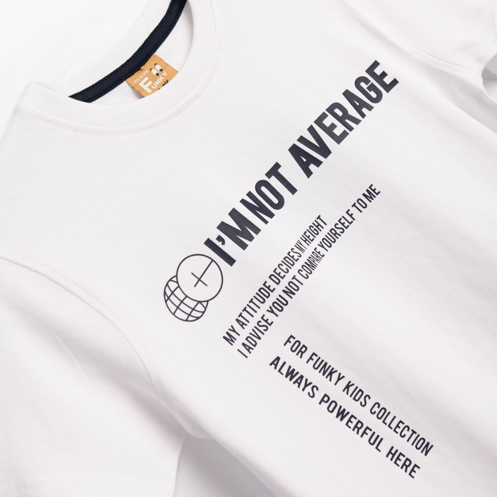 Μπλούζα κοντομάνικη κάλτσα με τύπωμα (I’m not average) σε χρώμα λευκό για αγόρι 6-16 ετών. Ποιότητα 100% cotton.