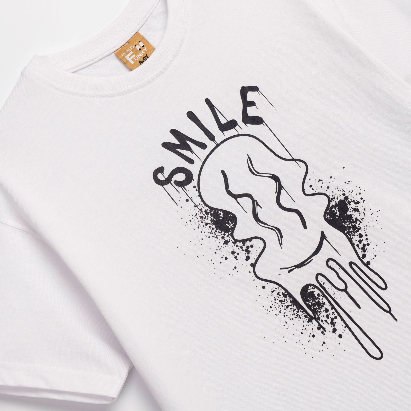 Μπλούζα κοντομάνικη κάλτσα με τύπωμα (φατσούλες) σε χρώμα λευκό για αγόρι 6-16 ετών. Ποιότητα 100% cotton.