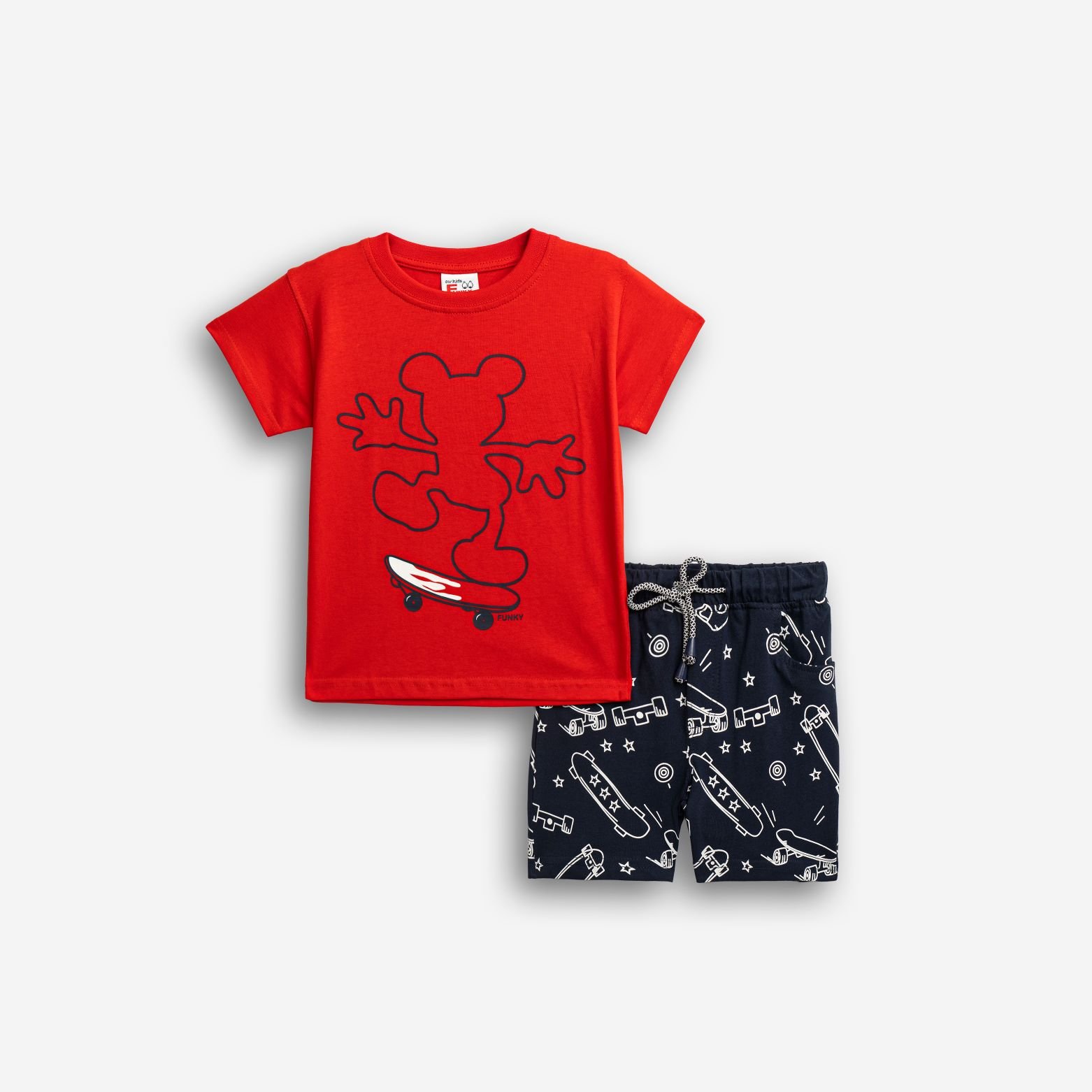 126-301112-2 Funky Σετ μπλούζα βερμούδα αγόρι κόκκινο μπλέ allover