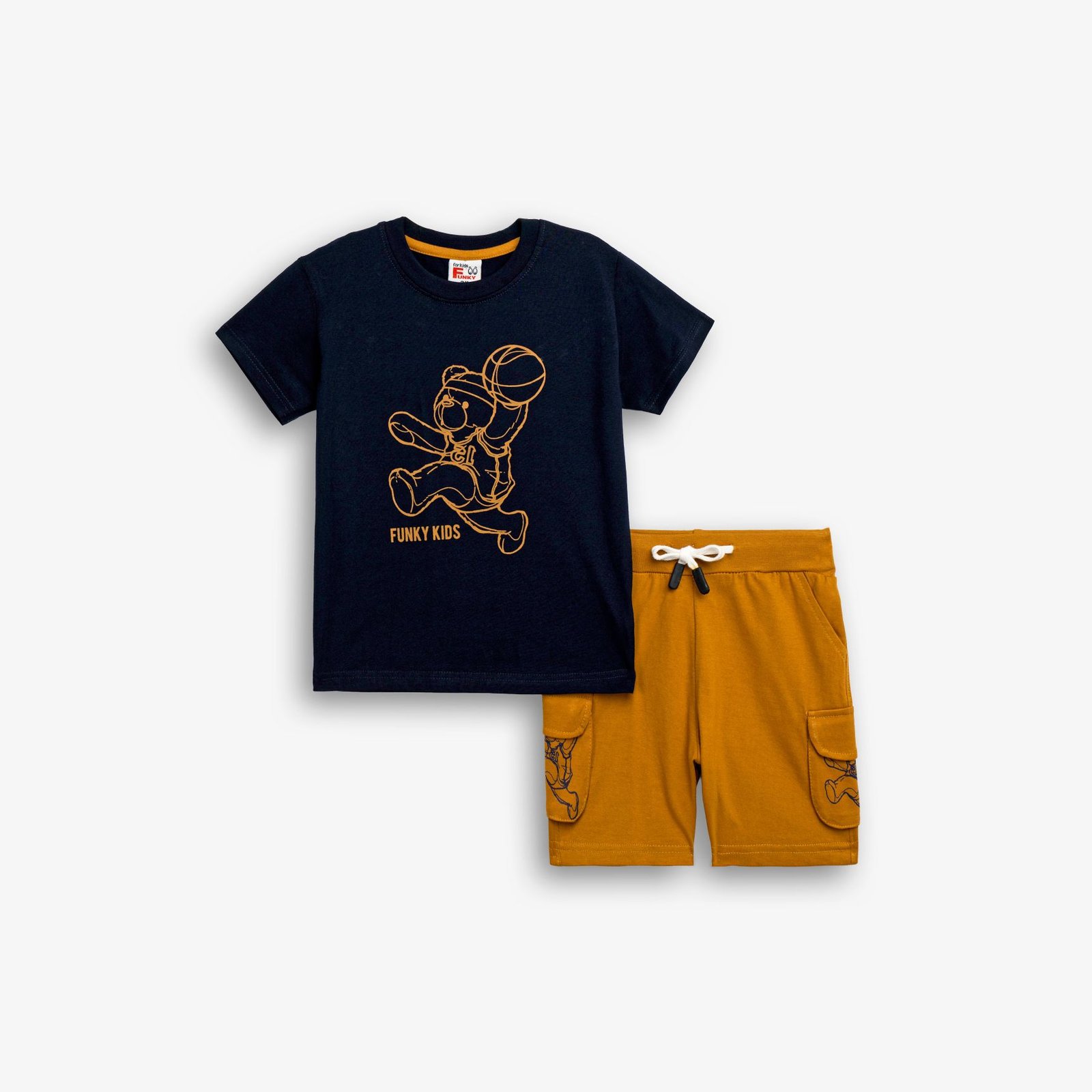 Σετ μπλούζα μακό με τύπωμα (αρκουδάκι) και βερμούδα πάνω από το γόνατο με τσέπες σε χρώμα μπλέ/τζίντζερ για αγόρι 1-6 ετών . Ποιότητα 100% COTTON.