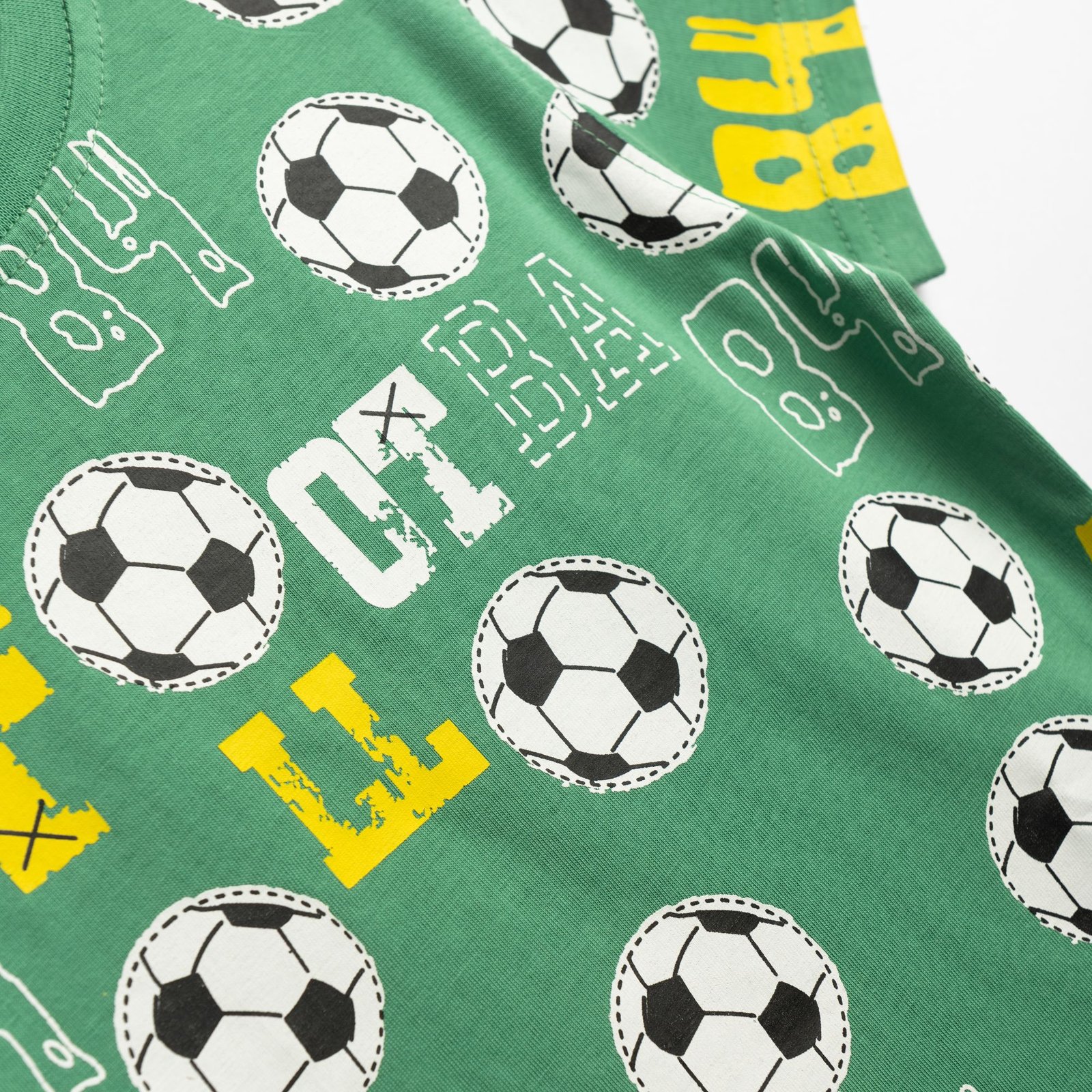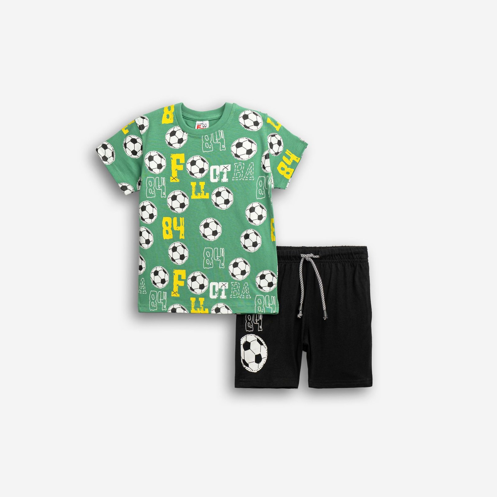 Σετ μπλούζα μακό με τύπωμα (football) allover και βερμούδα πάνω από το γόνατο με τύπωμα σε χρώμα leprechaun/μαύρο για αγόρι 1-6 ετών. Ποιότητα 100% COTTON.