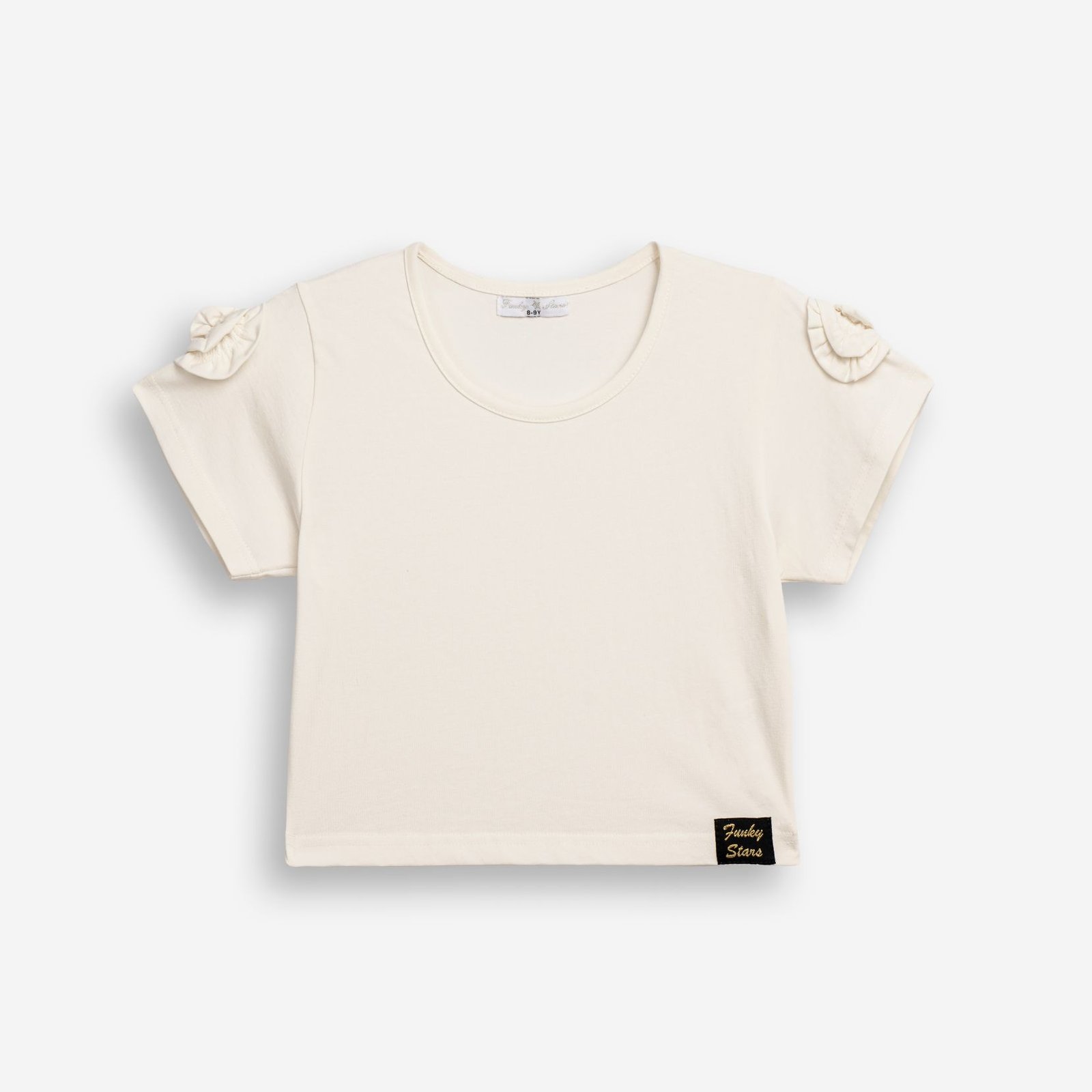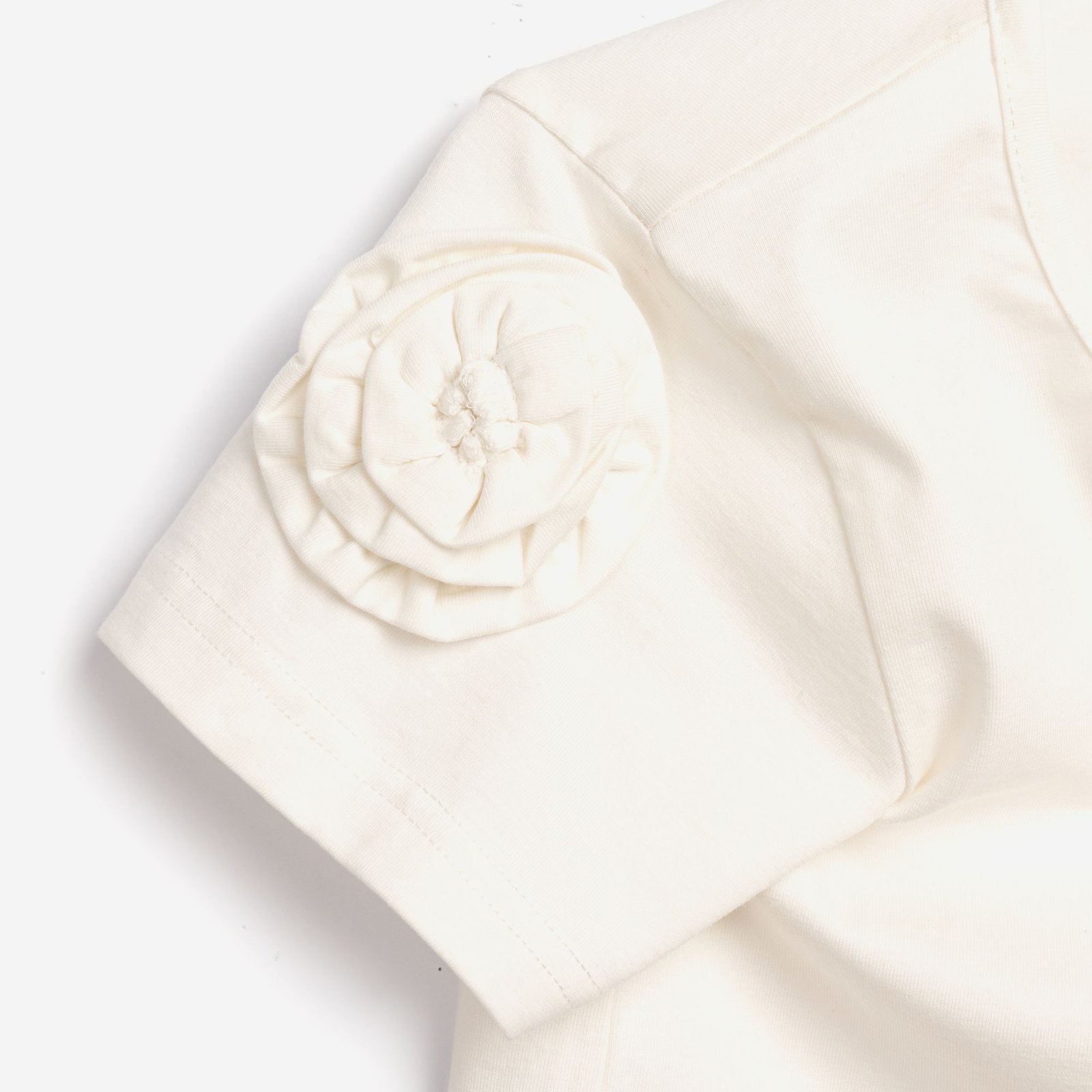 Μπλούζα κοντομάνικη κάλτσα λύκρα με τριαντάφυλλα στα μανίκια σε χρώμα εκρού για κορίτσι 6-16 ετών. Ποιότητα 95% COTTON-5% ELASTAN.