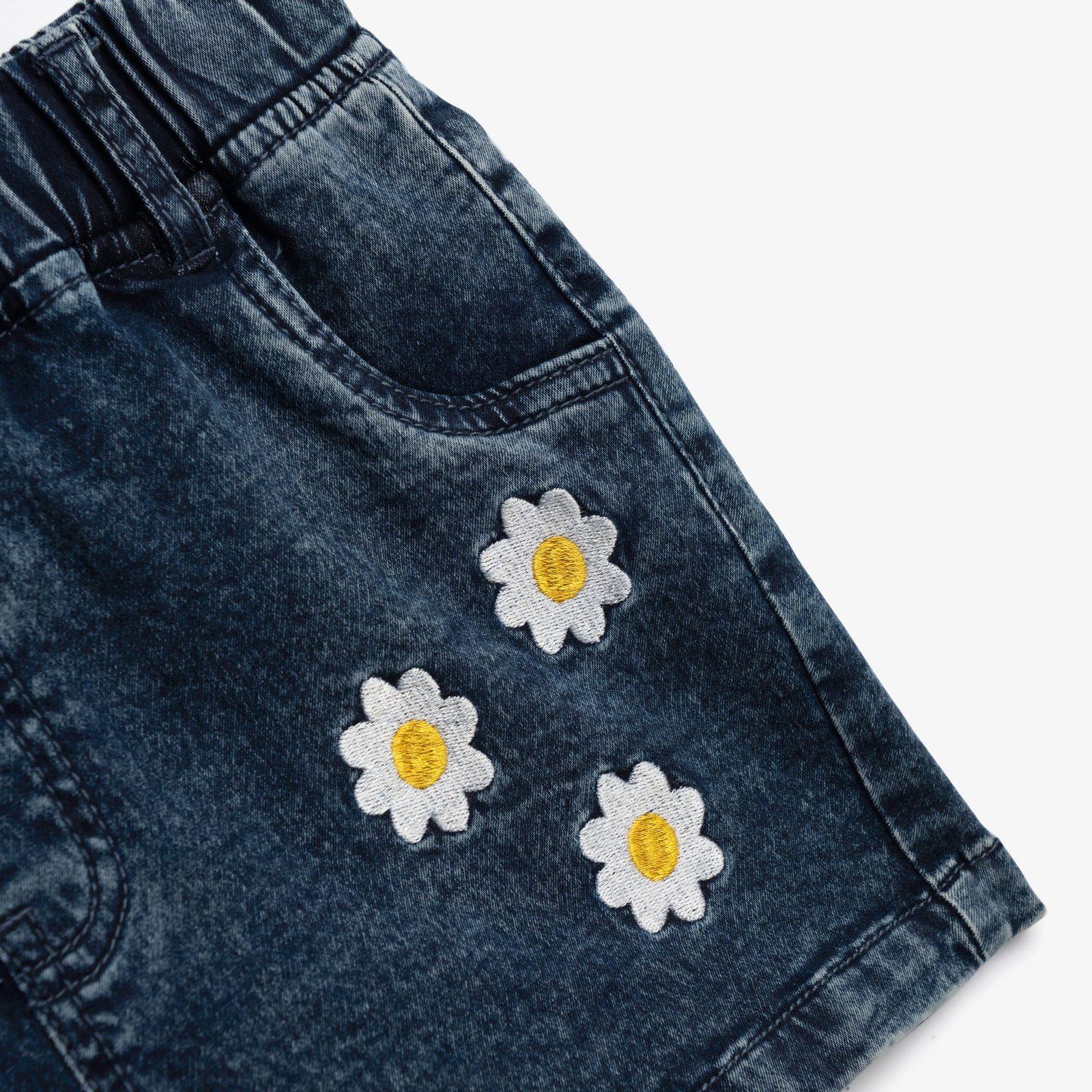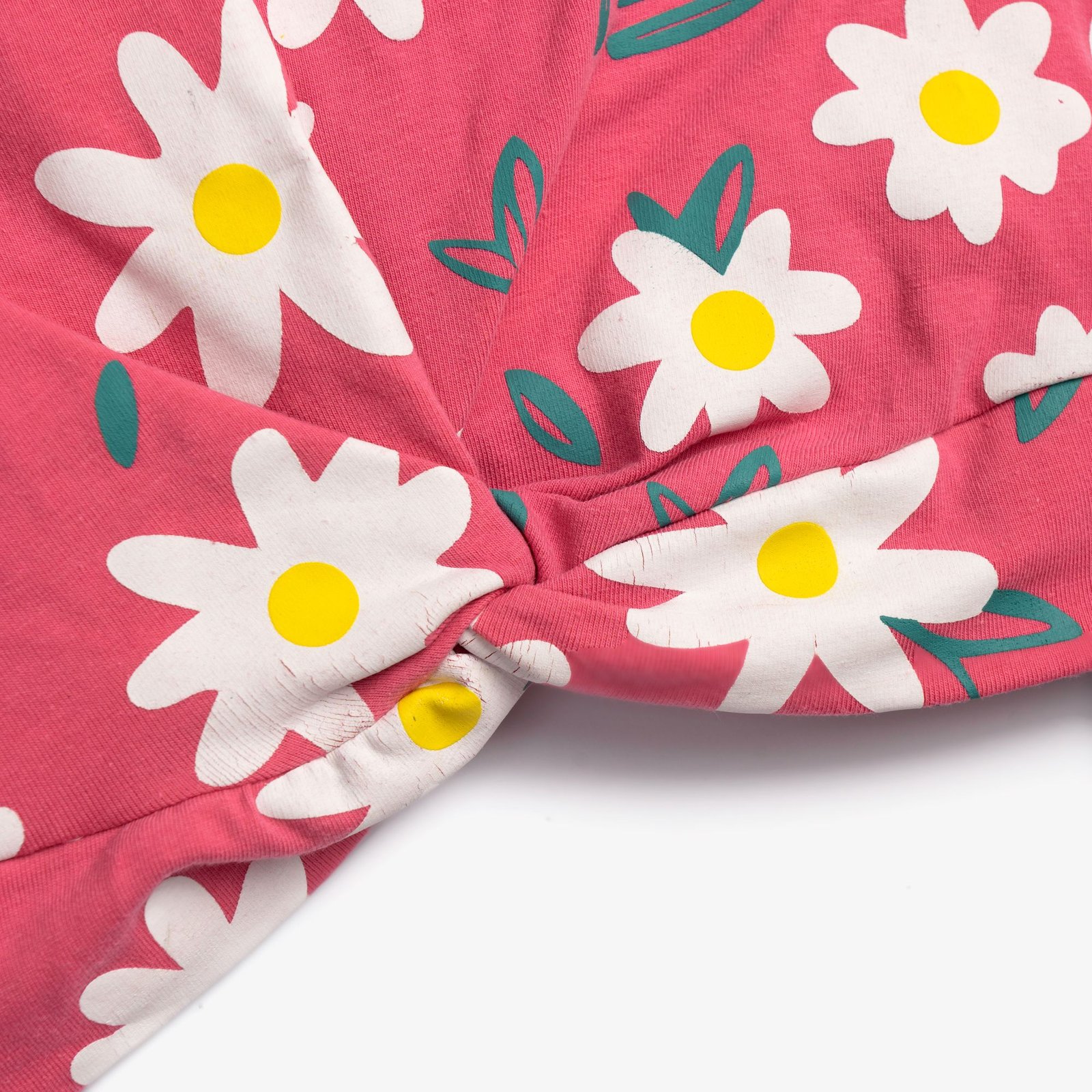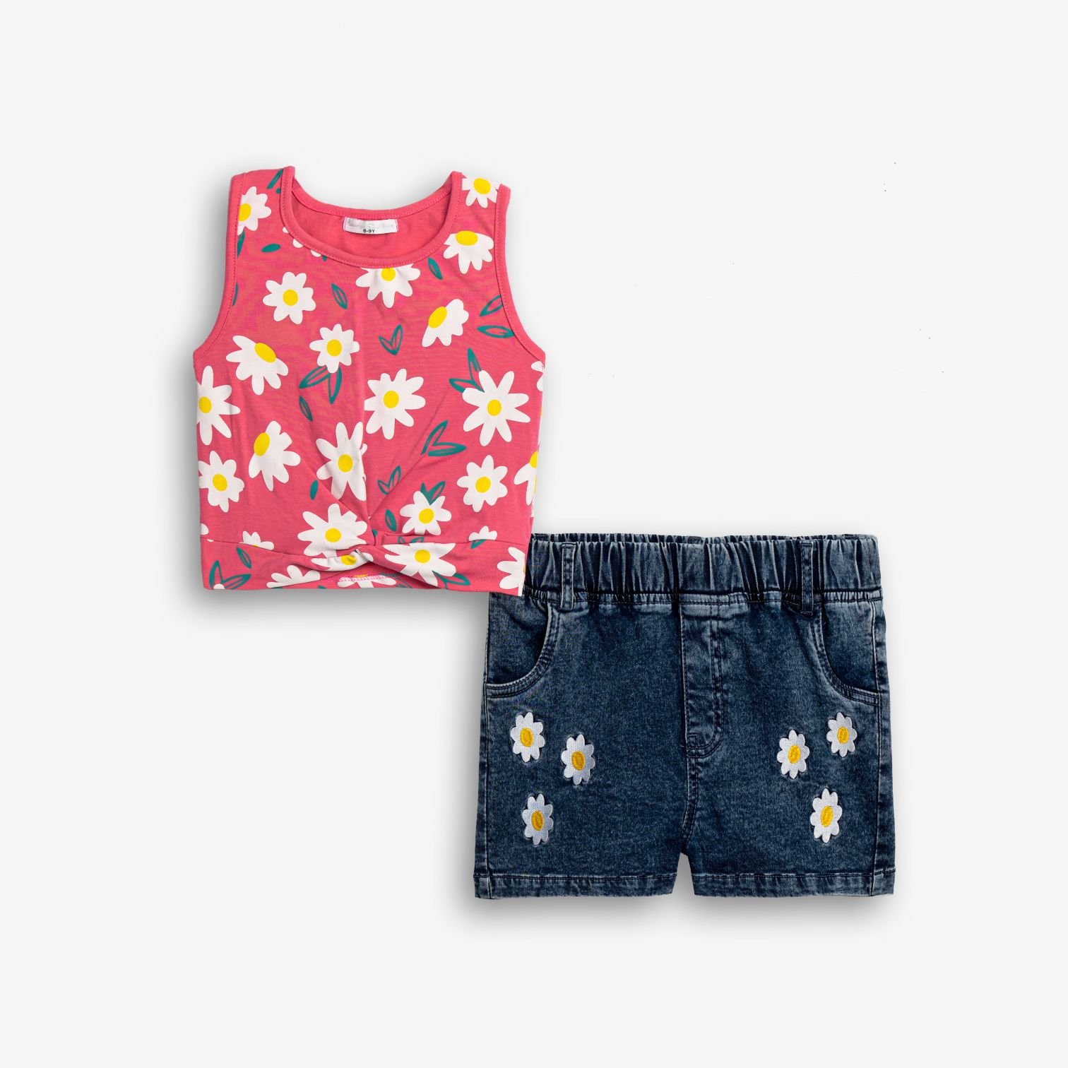Σετ μπλούζα κάλτσα λύκρα με τύπωμα (λουλούδια) allover και σόρτς τζίν λύκρα σε χρώμα φλαμίνγκο/μπλέ τζίν για κορίτσι 6-16 ετών. Ποιότητα 95% COTTON-5% ELASTAN+98% COTTON-2% ELASTAN.