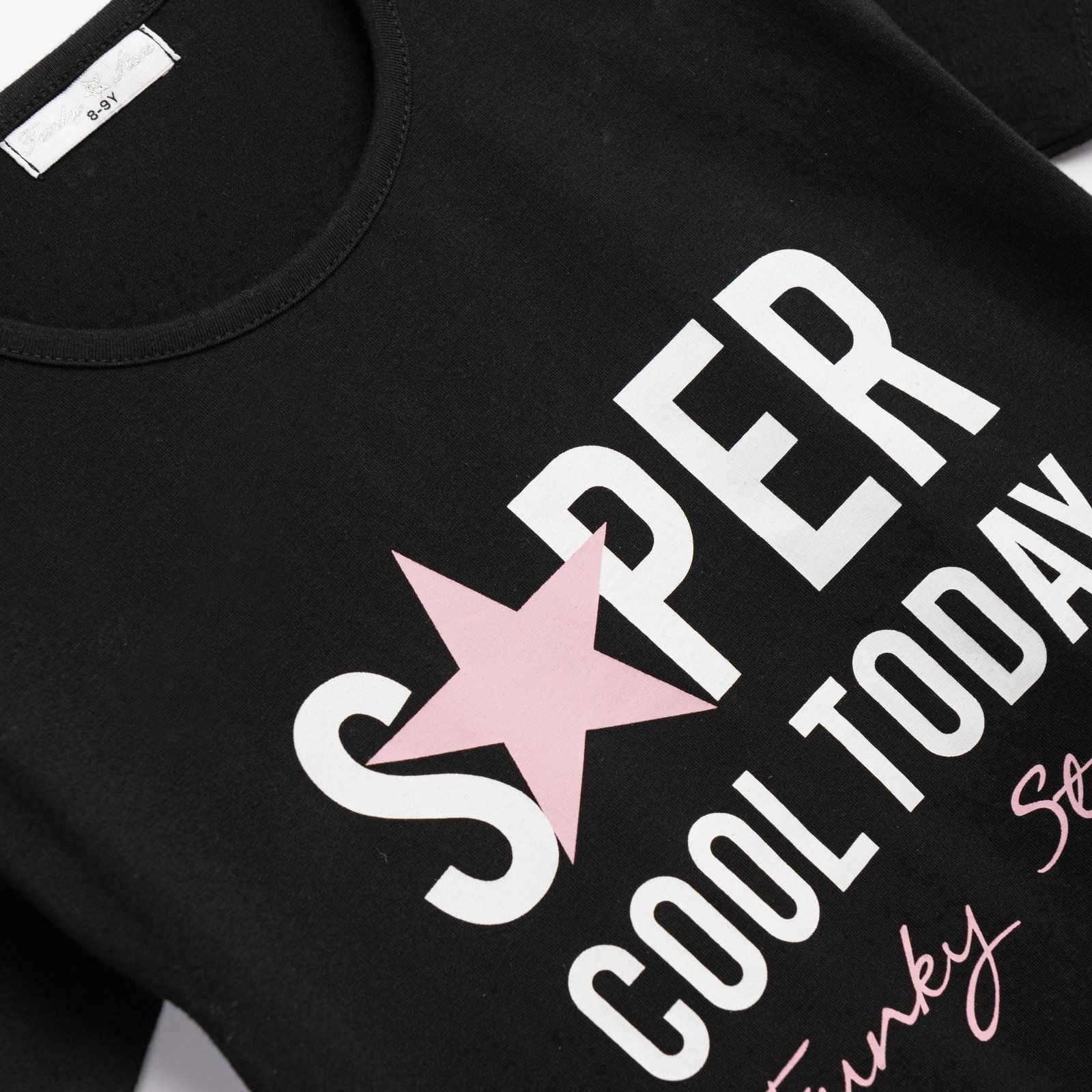 Σετ μπλούζα κάλτσα λύκρα με τύπωμα (super cool today) και κολάν ποδηλατικό με τύπωμα σε χρώμα μαύρο/άγριο τριαντάφυλλο για κορίτσι 6-16 ετών . Ποιότητα 95% COTTON-5% ELASTAN