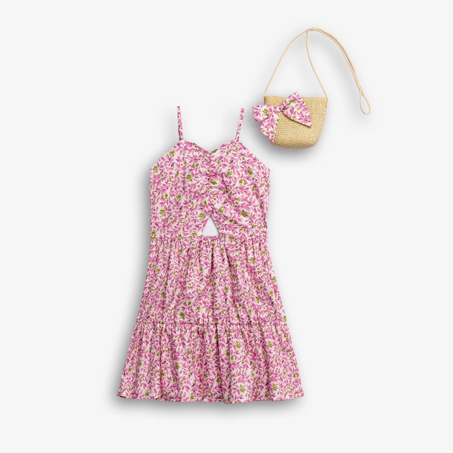 Φόρεμα φλοράλ και τσάντα σε χρώμα τύπος allover για κορίτσι 2 έως 12 ετών. Ποιότητα 100% POLYESTER.