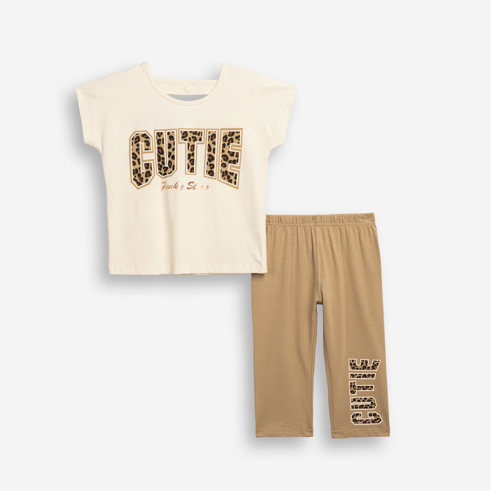 Σετ μπλούζα και κολάν κάτω από το γόνατο κάλτσα λύκρα σε χρώμα εκρού/μόκα για κορίτσι 6-16 ετών. Ποιότητα 95% COTTON-5% ELASTAN