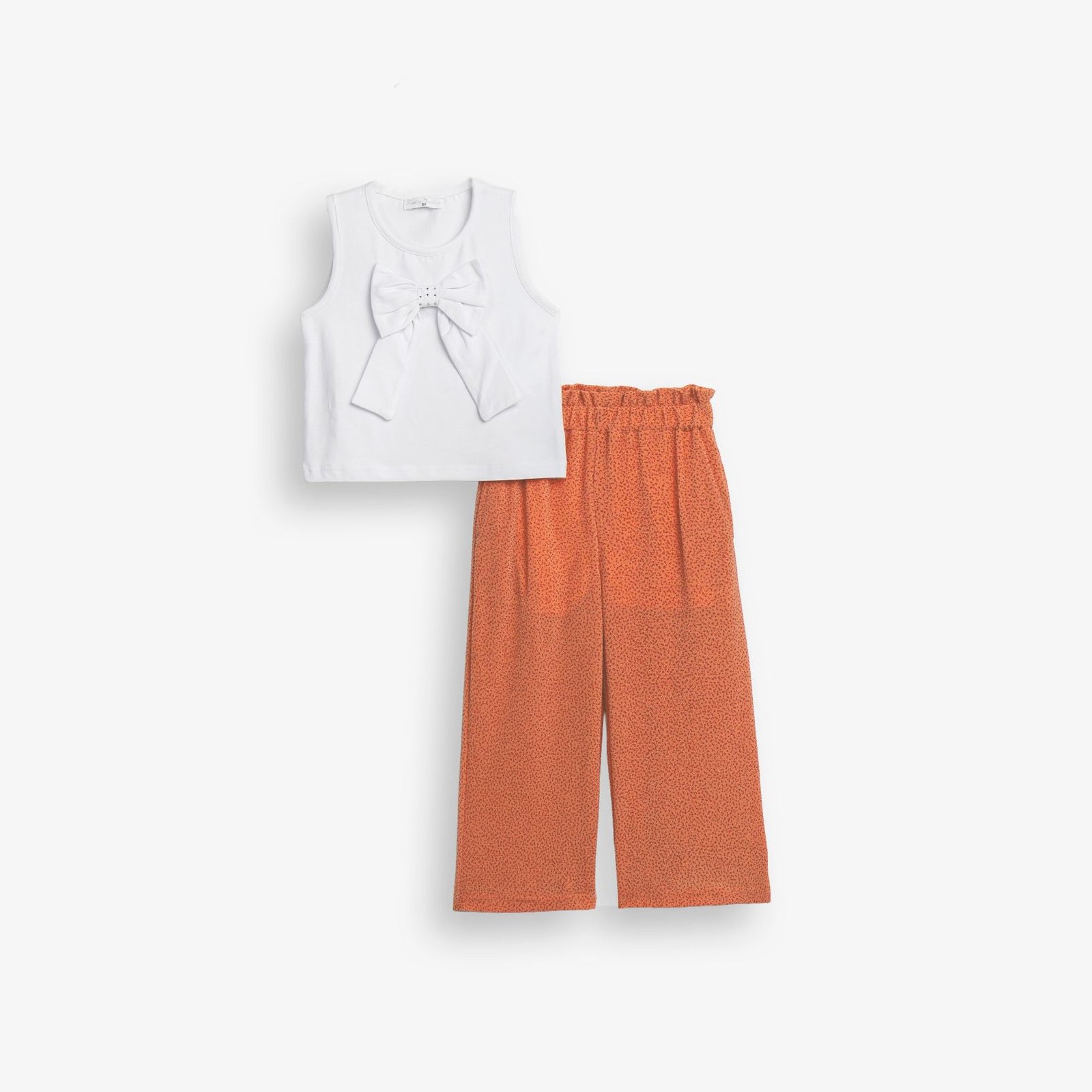 Σετ μπλούζα και παντελόνα με τύπωμα σε χρώμα λευκό/τύπος για κορίτσι 1-6 ετών . Ποιότητα 95% COTTON-5% ELASTAN.