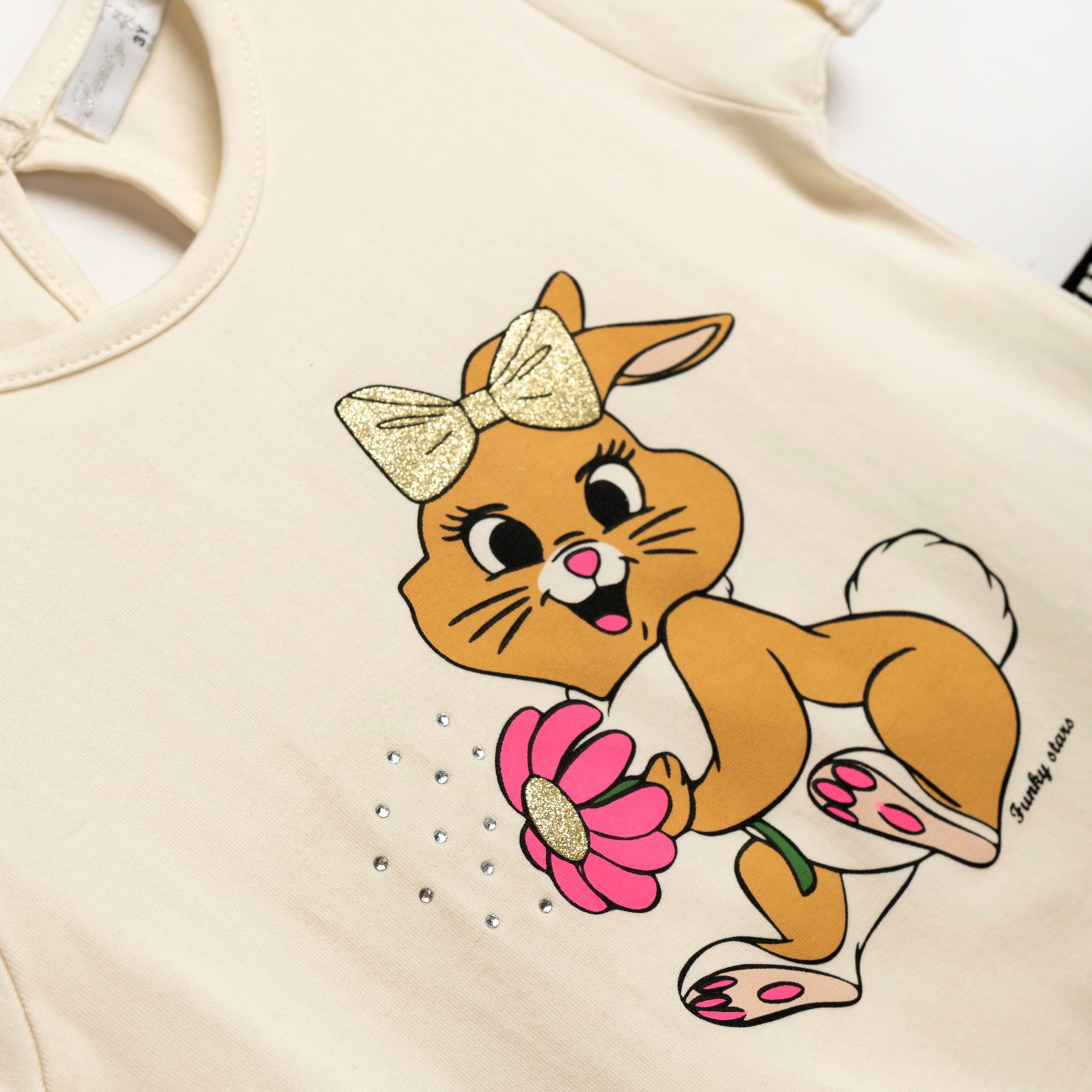 Σετ μπλούζα κάλτσα λύκρα με τύπωμα (κουνελάκι) και ποδηλατικό κολάν με τύπωμα allover σε χρώμα εκρού/μαύρο για κορίτσι 1-6 ετών . Ποιότητα 95% COTTON+5% ELASTAN.