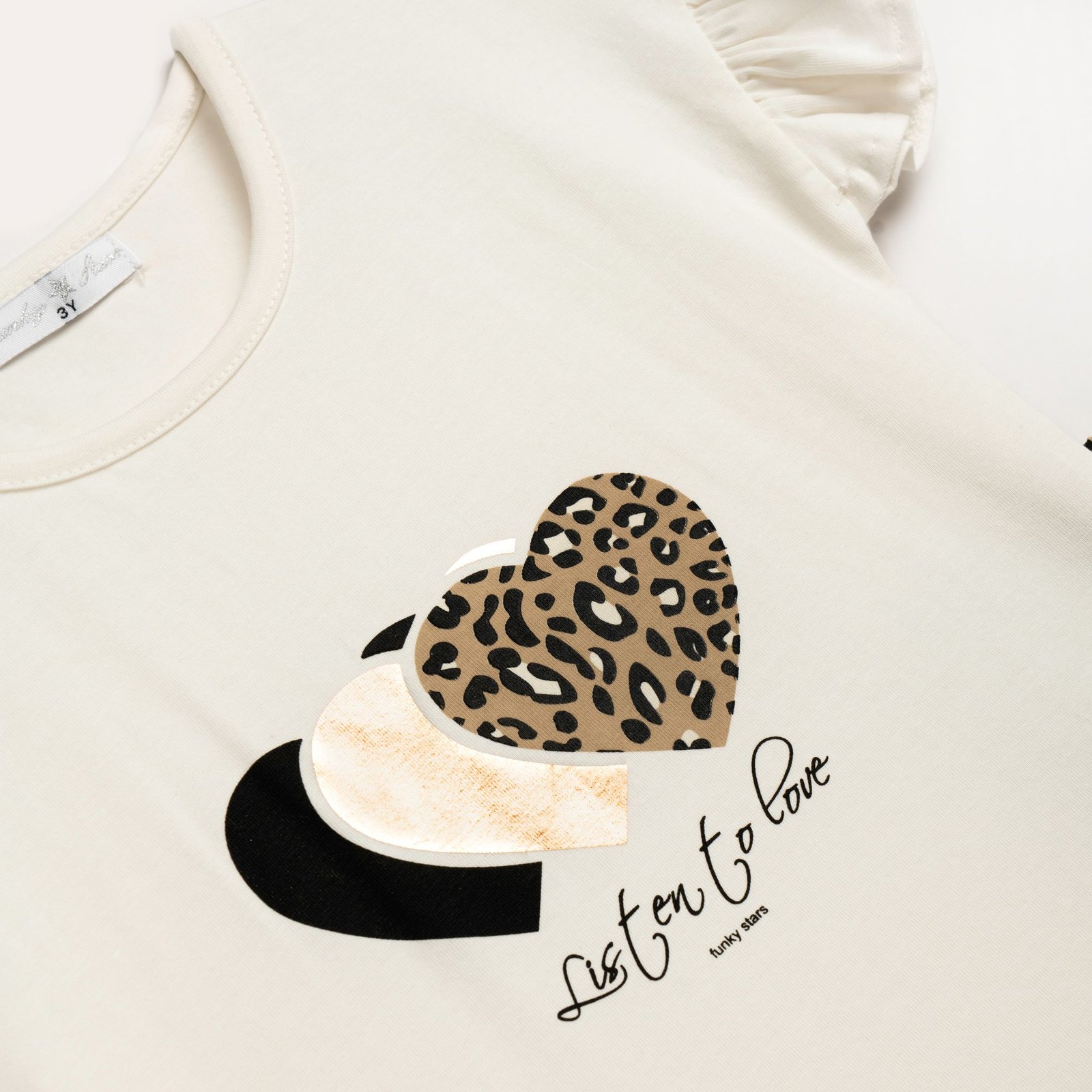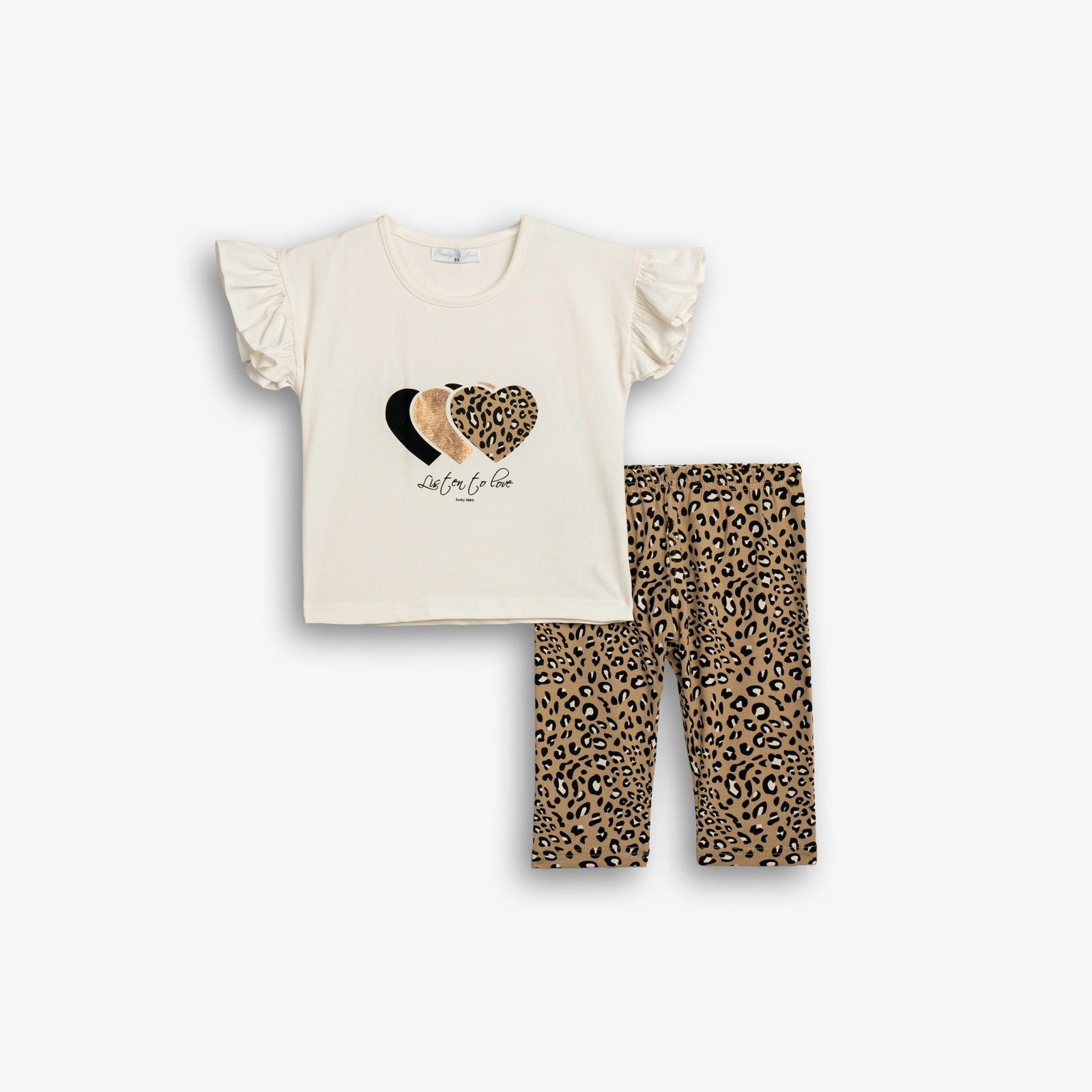 Σετ μπλούζα με τύπωμα (καρδιές) και κολάν κάπρι κάλτσα με τύπωμα allover σε χρώμα εκρού/μόκα για κορίτσι 1-6 ετών . Ποιότητα 95% COTTON+5% ELASTAN.