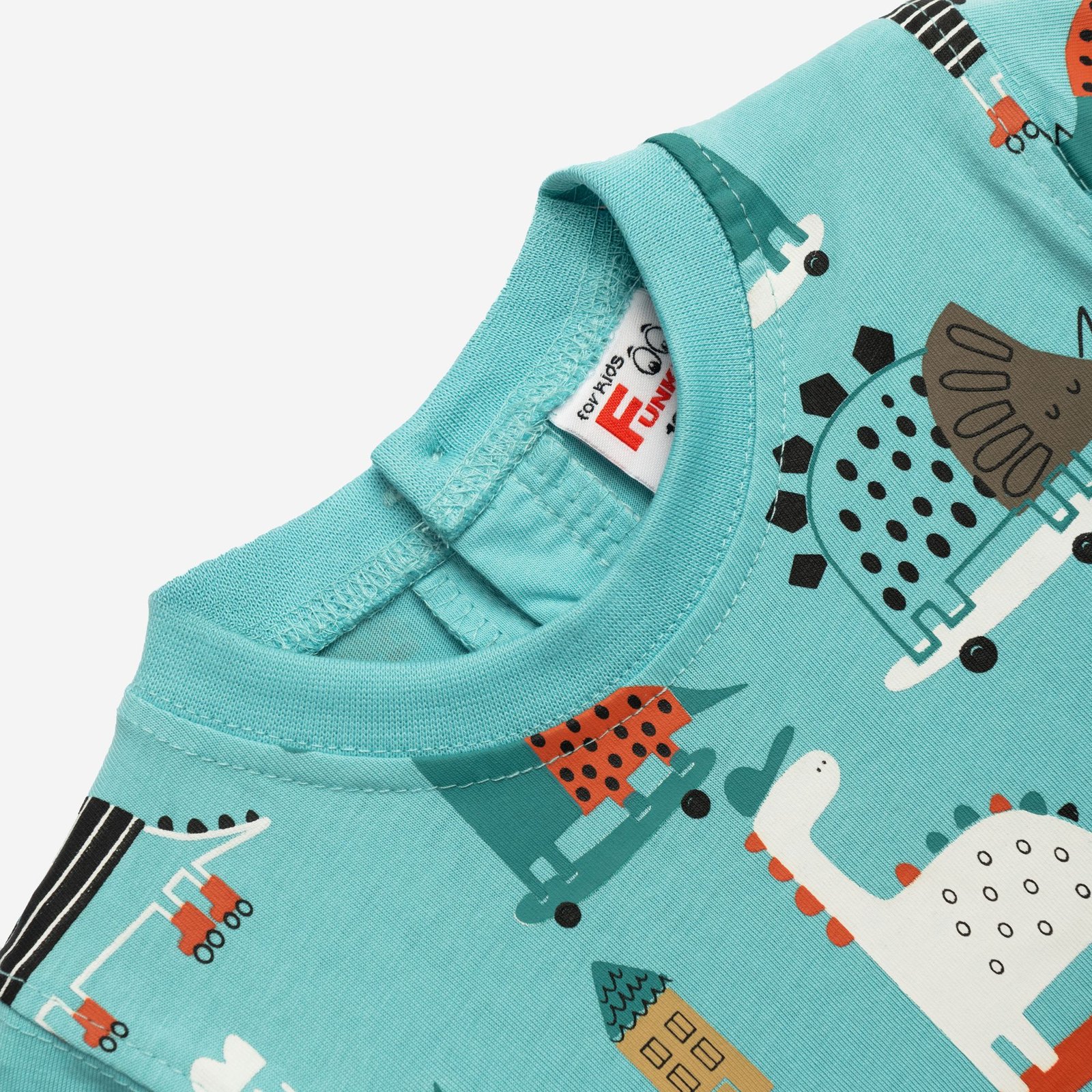 Σετ μπλούζα μακό με τύπωμα (δεινοσαυράκια) allover και σόρτς με τύπωμα σε χρώμα τιρκουάζ/μαύρο για αγόρι μηνών . Ποιότητα 100% cotton.
