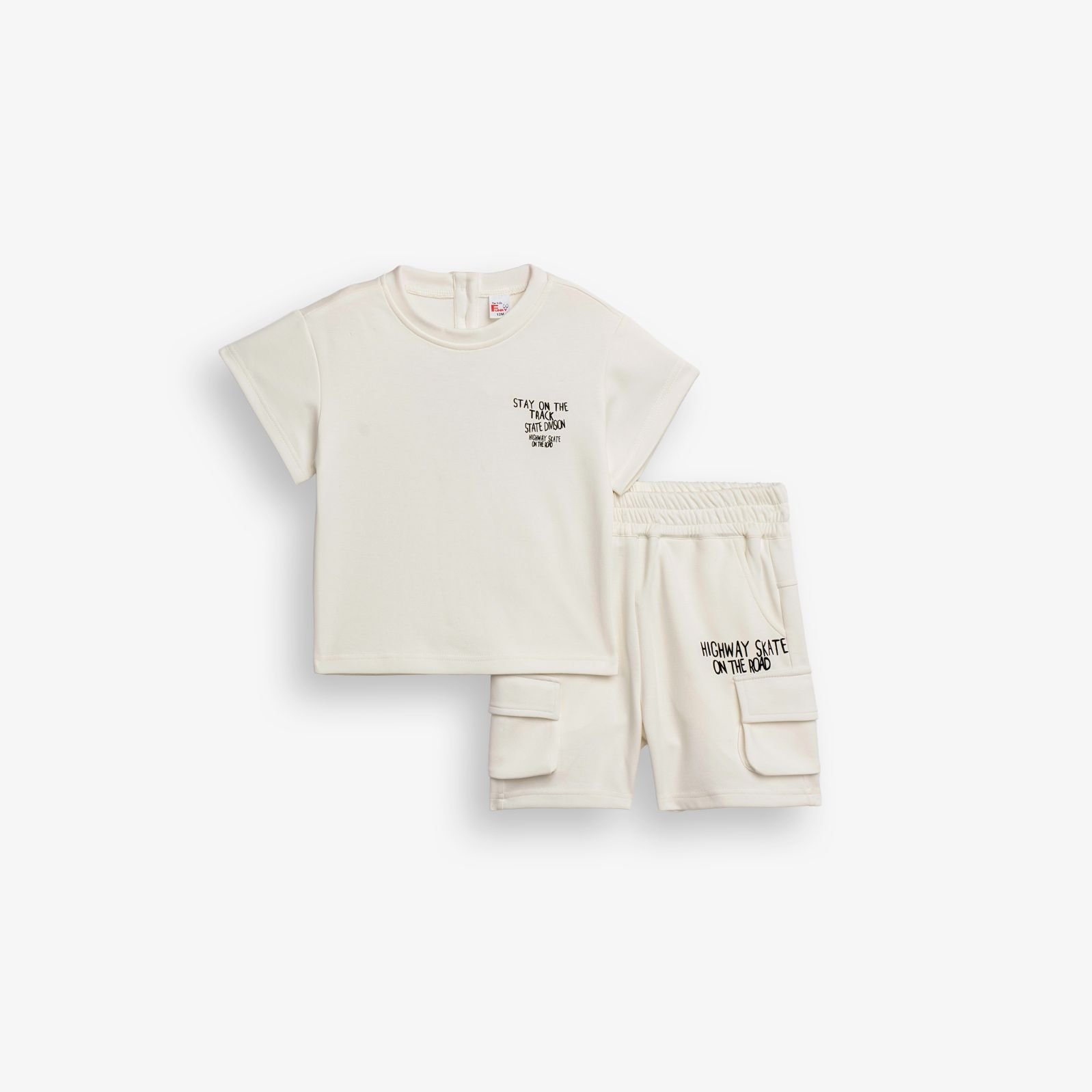126-801207-1 Funky Σετ μπλούζα βερμούδα μηνών αγόρι εκρού
