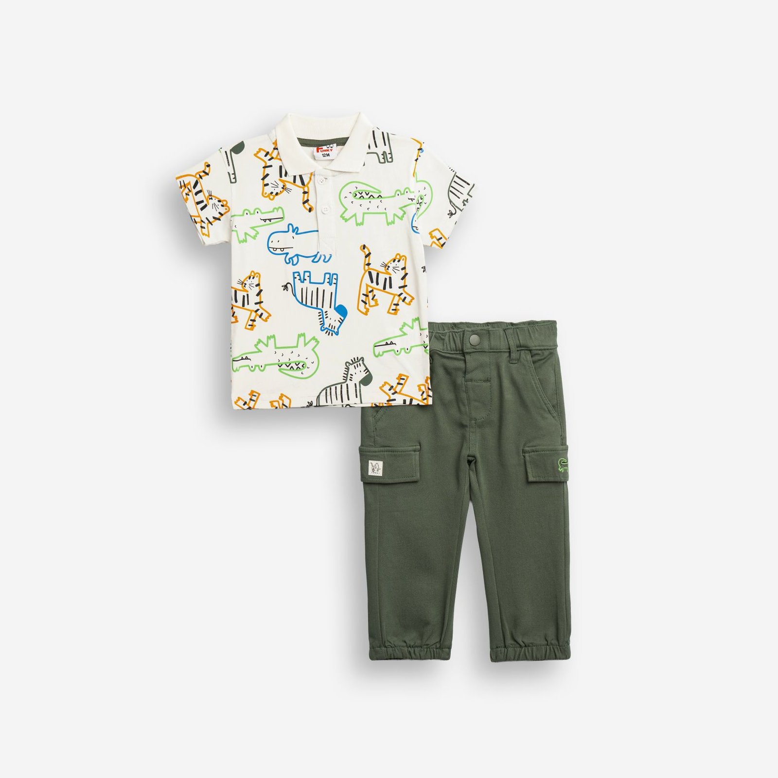 126-822104-1 Funky Σετ μπλούζα πόλο παντελόνι μηνών αγόρι εκρού allover χακί