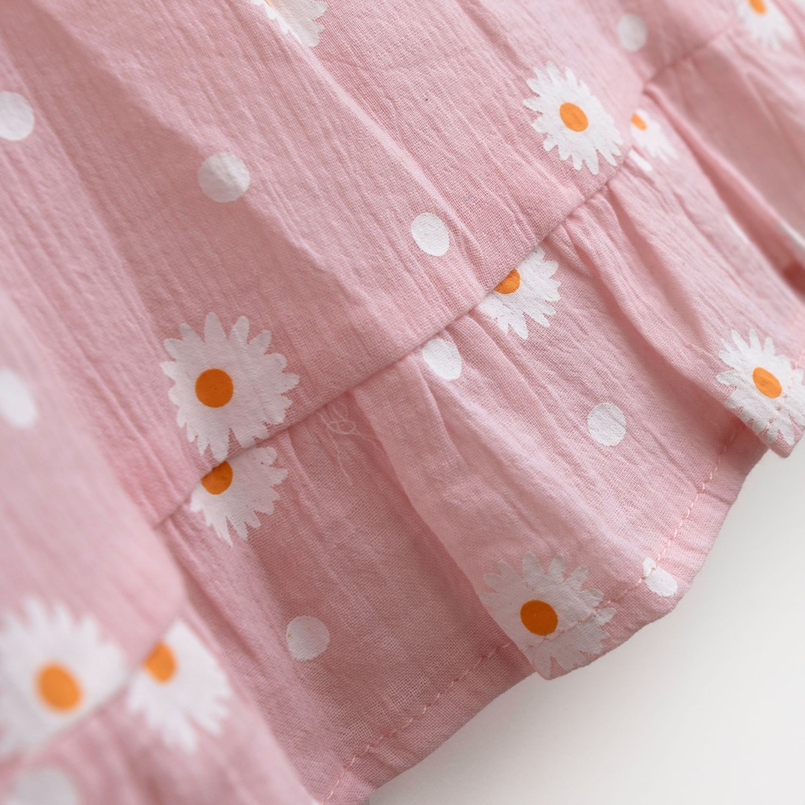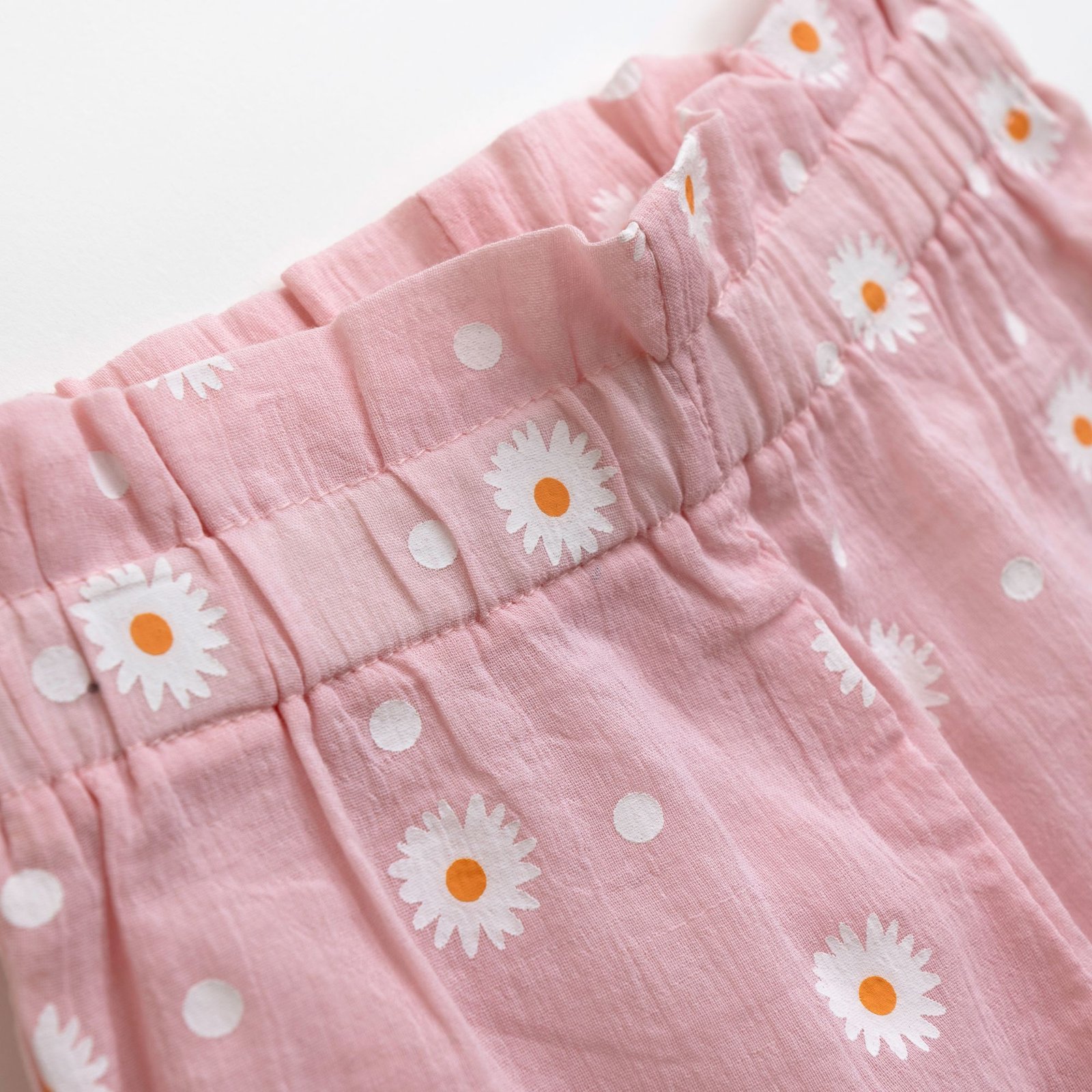 Σετ μπλούζα κρέπ με τύπωμα (χαμομήλι) allover και σόρτς κρεπ allover σε χρώμα ροζ πούδρας/ροζ πούδρας για κορίτσι μηνών . Ποιότητα 98% COTTON-2% ELASTAN.