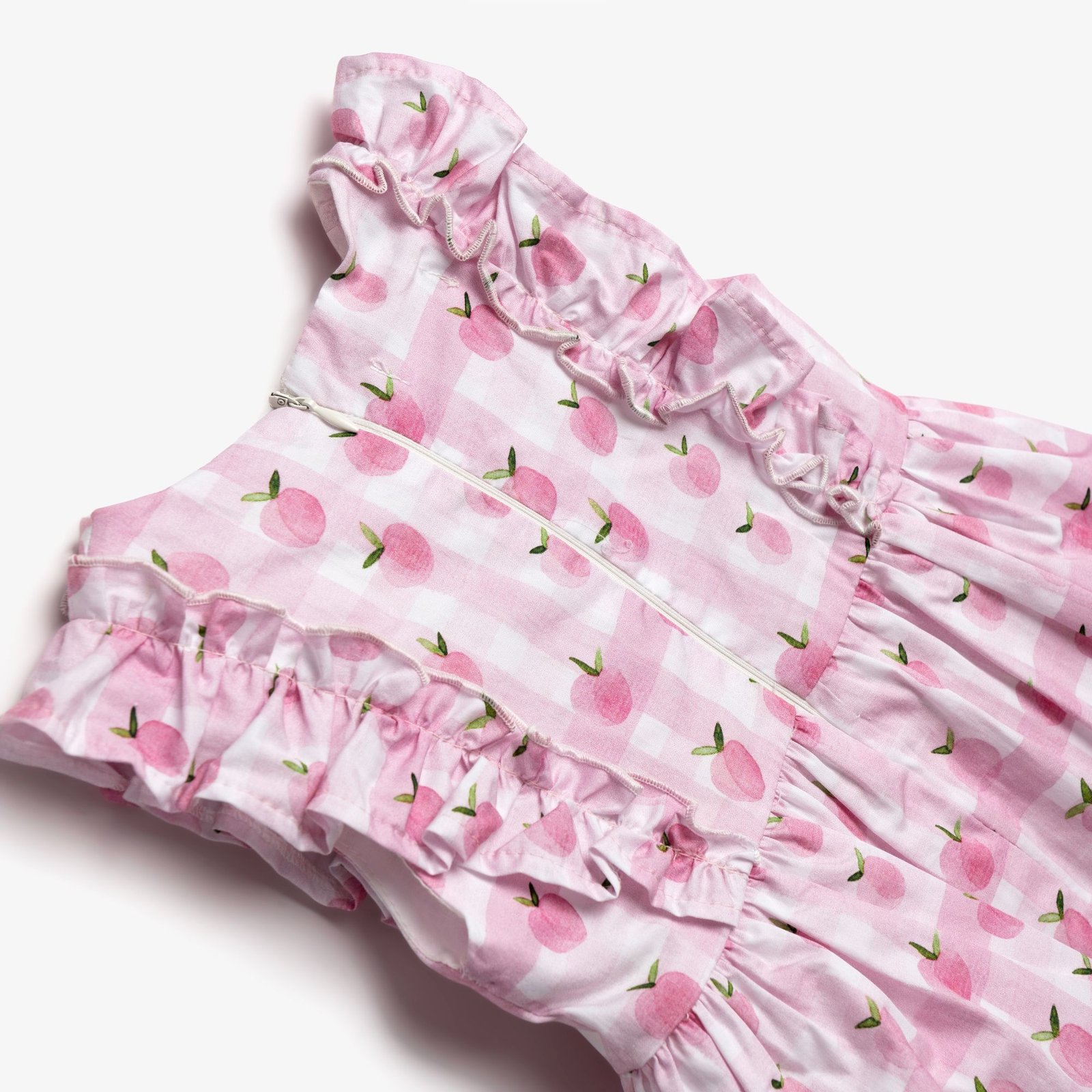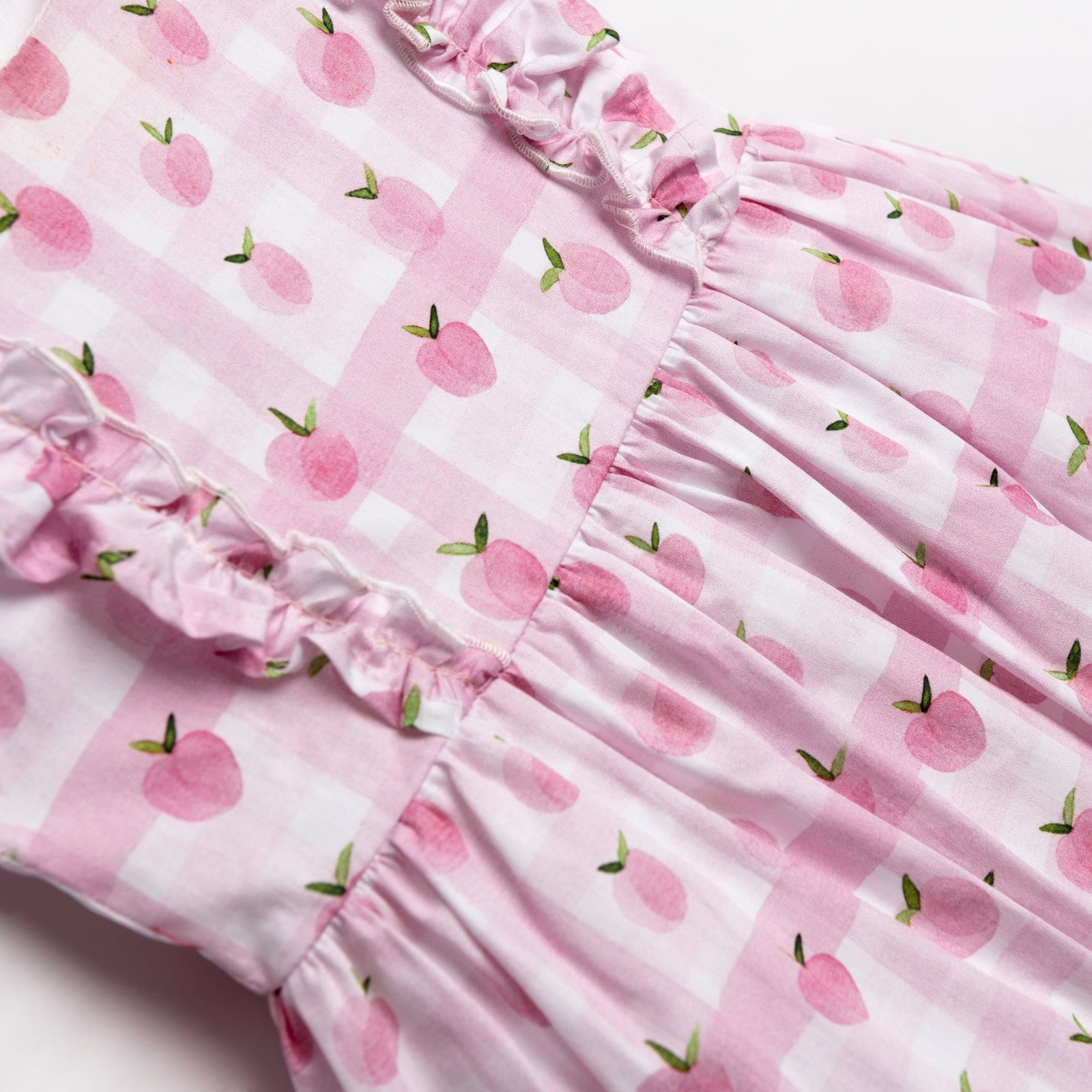 Φόρεμα και κορδέλα με τύπωμα (ροζ μηλαράκια) allover σε χρώμα τύπος για κορίτσι μηνών.