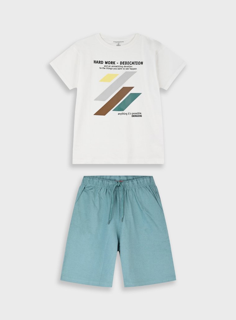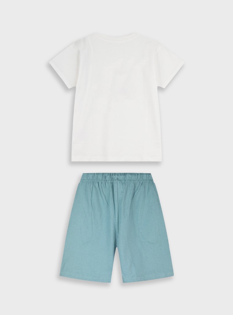 Σετ κοντομάνικη μπλούζα με τύπωμα και βερμούδα για αγόρι . Ποιότητα 100% ΒΑΜΒΑΚΙ.