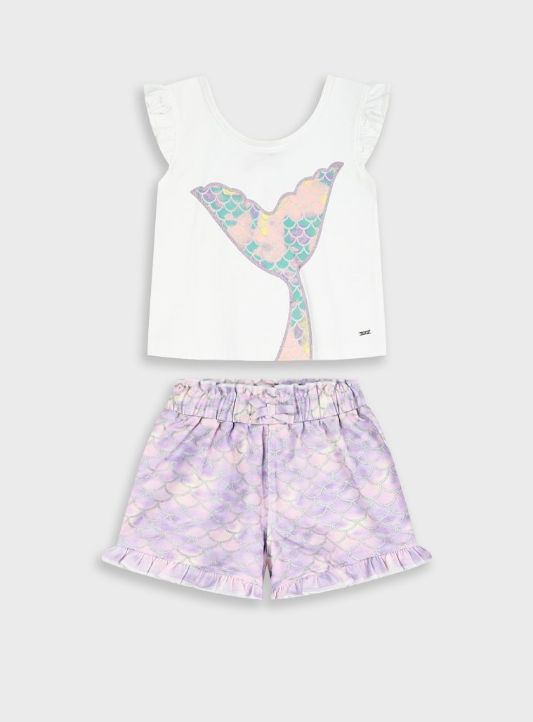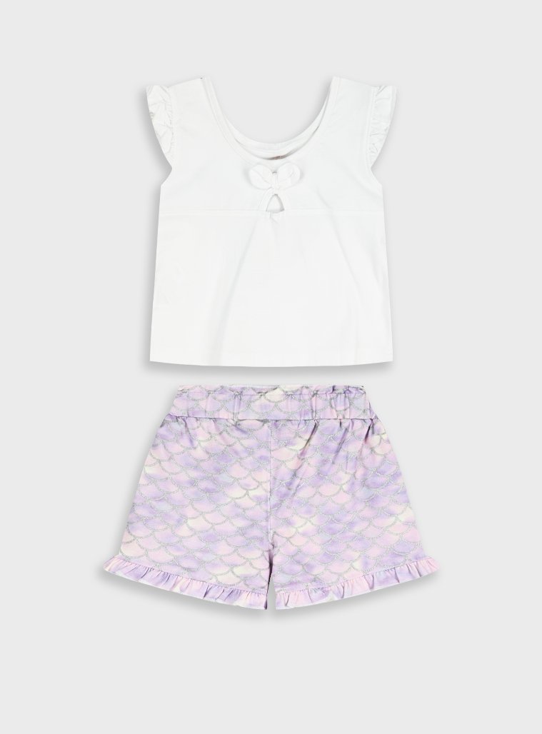 Σετ αμάνικη μπλούζα με τύπωμα και εμπριμέ σορτς για κορίτσι . Ποιότητα 95%ΒΑΜΒΑΚΙ-5%ΕΛΑΣΤΑΝ.