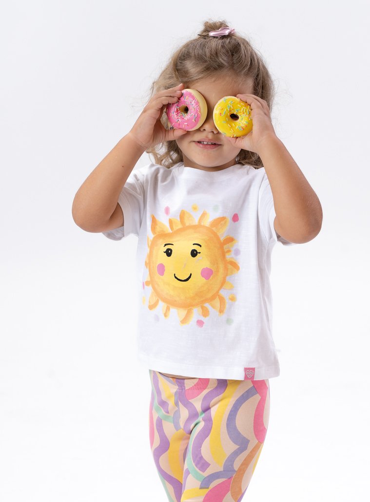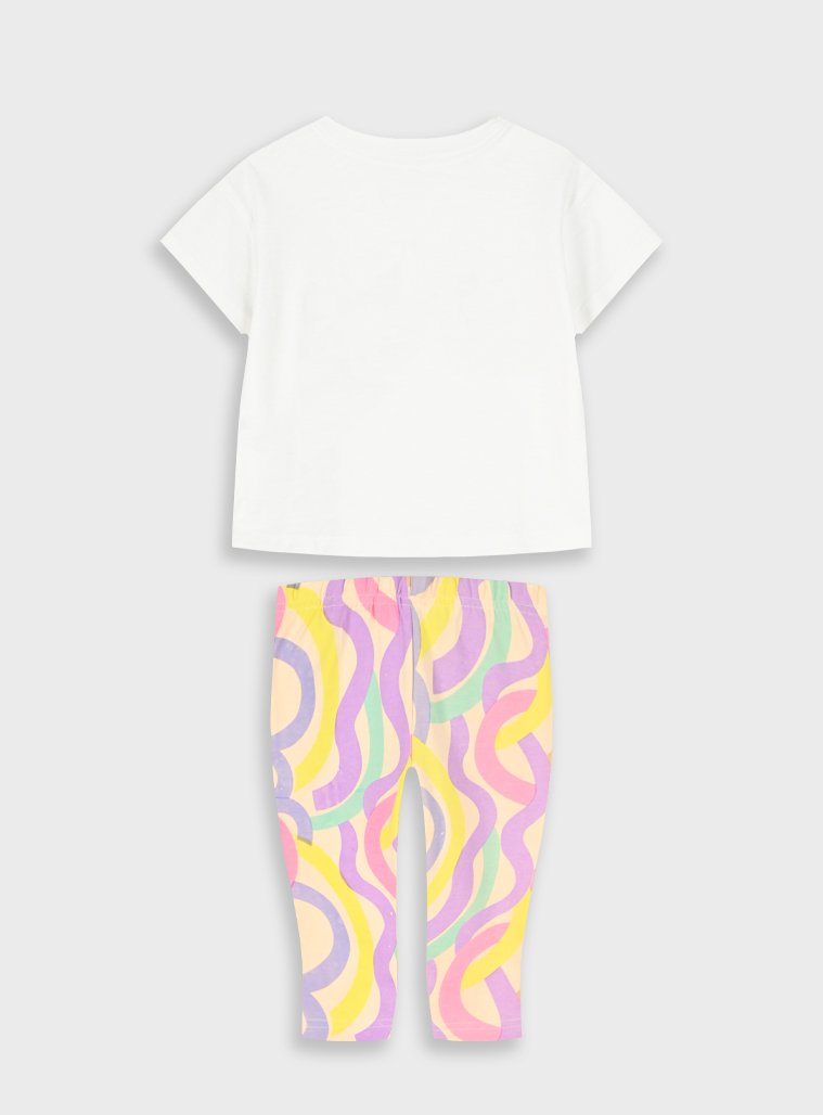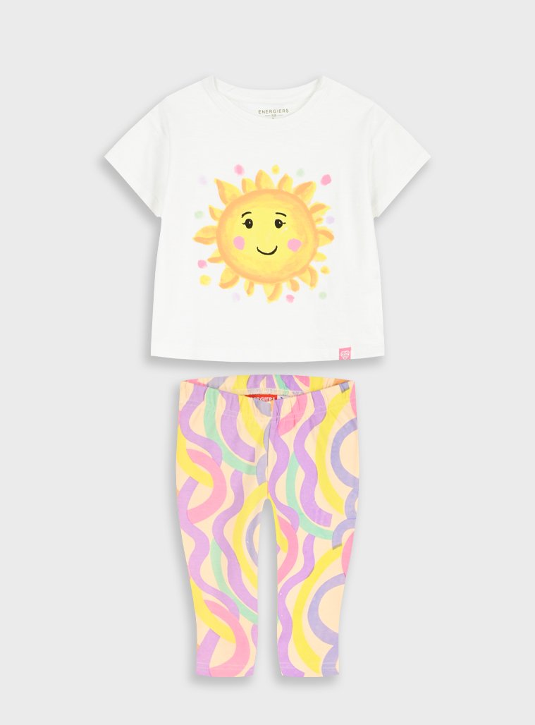 Σετ κοντομάνικη μπλούζα με τύπωμα και εμπριμέ κάπρι κολάν για κορίτσι . Ποιότητα ΜΠΛΟΥΖΑ 100% ΒΑΜΒΑΚΙ+ΚΟΛΑΝ 95% ΒΑΜΒΑΚΙ-5% ΕΛΑΣΤΑΝ.