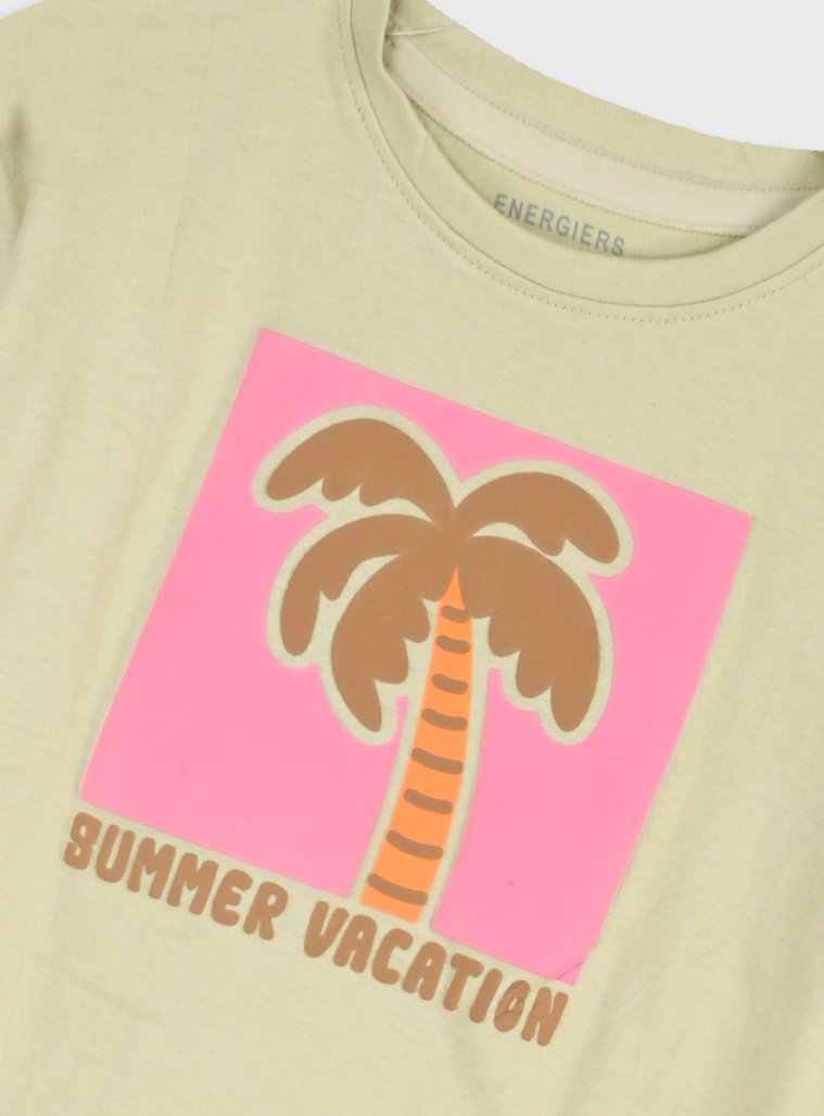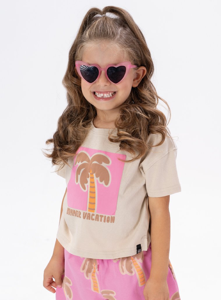 Σετ κοντομάνικη μπλούζα με τύπωμα και εμπριμέ σορτς για κορίτσι . Ποιότητα 100% ΒΑΜΒΑΚΙ.