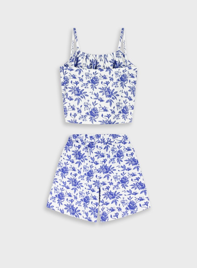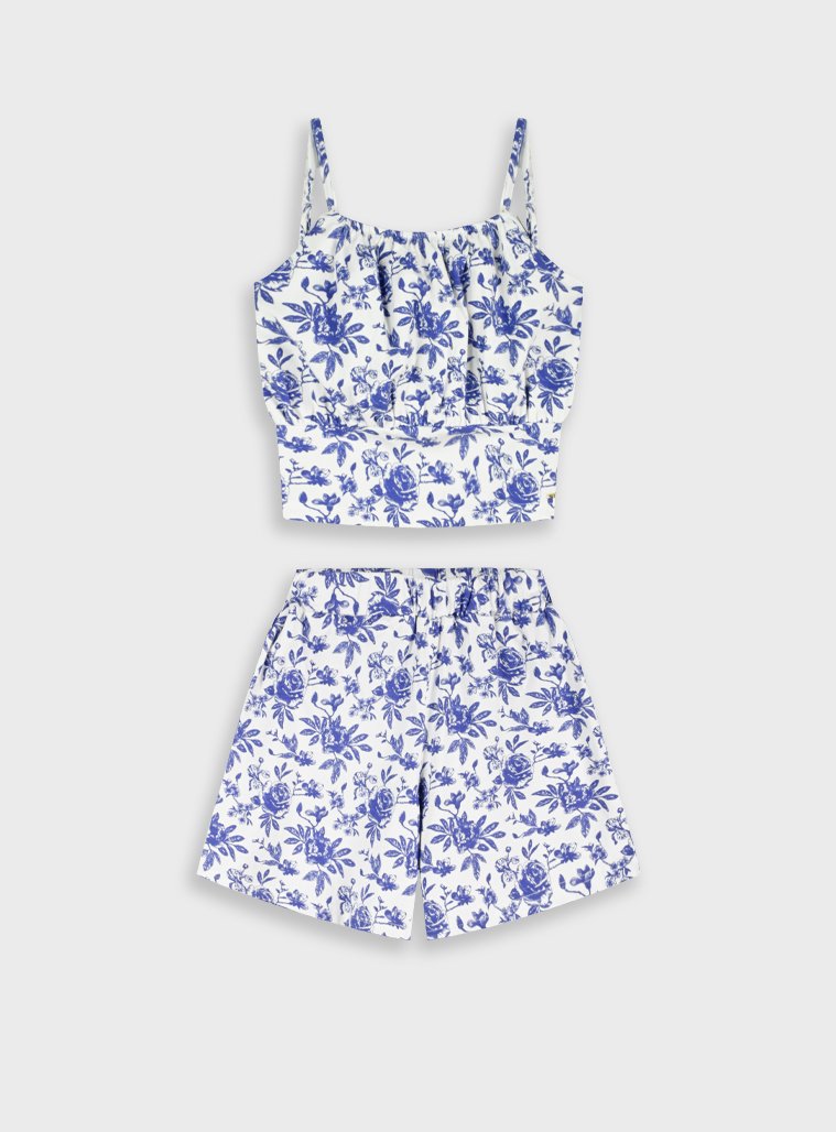 Εμπριμέ σετ τοπ με σορτς για κορίτσι. Ποιότητα 95% ΒΑΜΒΑΚΙ-5% ΕΛΑΣΤΑΝ.