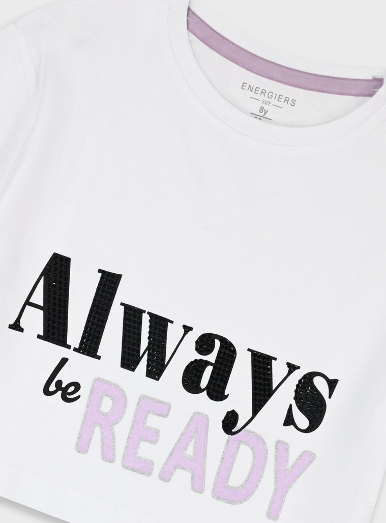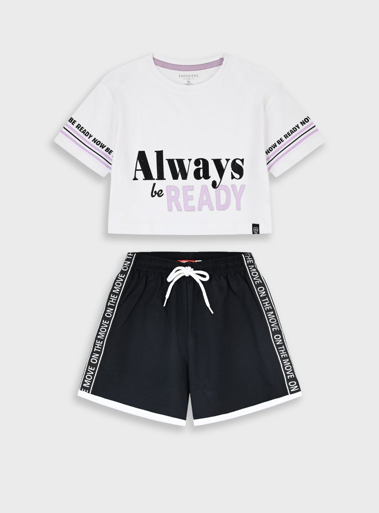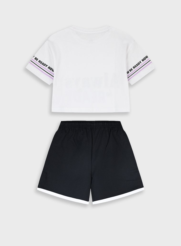 Σετ κοντομάνικη μπλούζα με τύπωμα και σορτς για κορίτσι . Ποιότητα 100%ΒΑΜΒΑΚΙ.