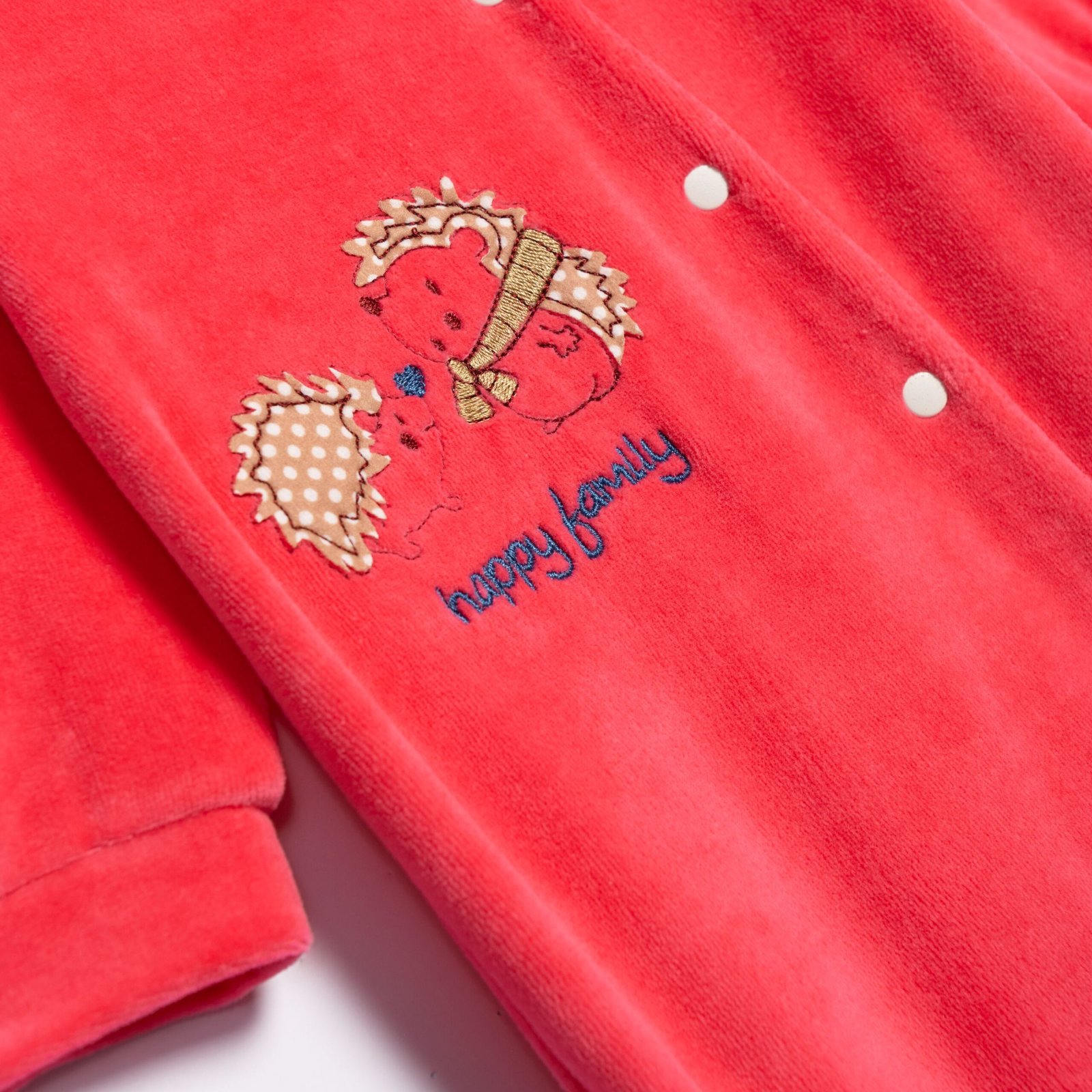 Φορμάκι μακρυμάνικο βελουτέ με τύπωμα σε χρώμα έντονο ροζ βρεφανάπτυξη για 0-24 μηνών κορίτσι. Ποιοτικό βελούδο 80% COTTON-20% POLYESTER