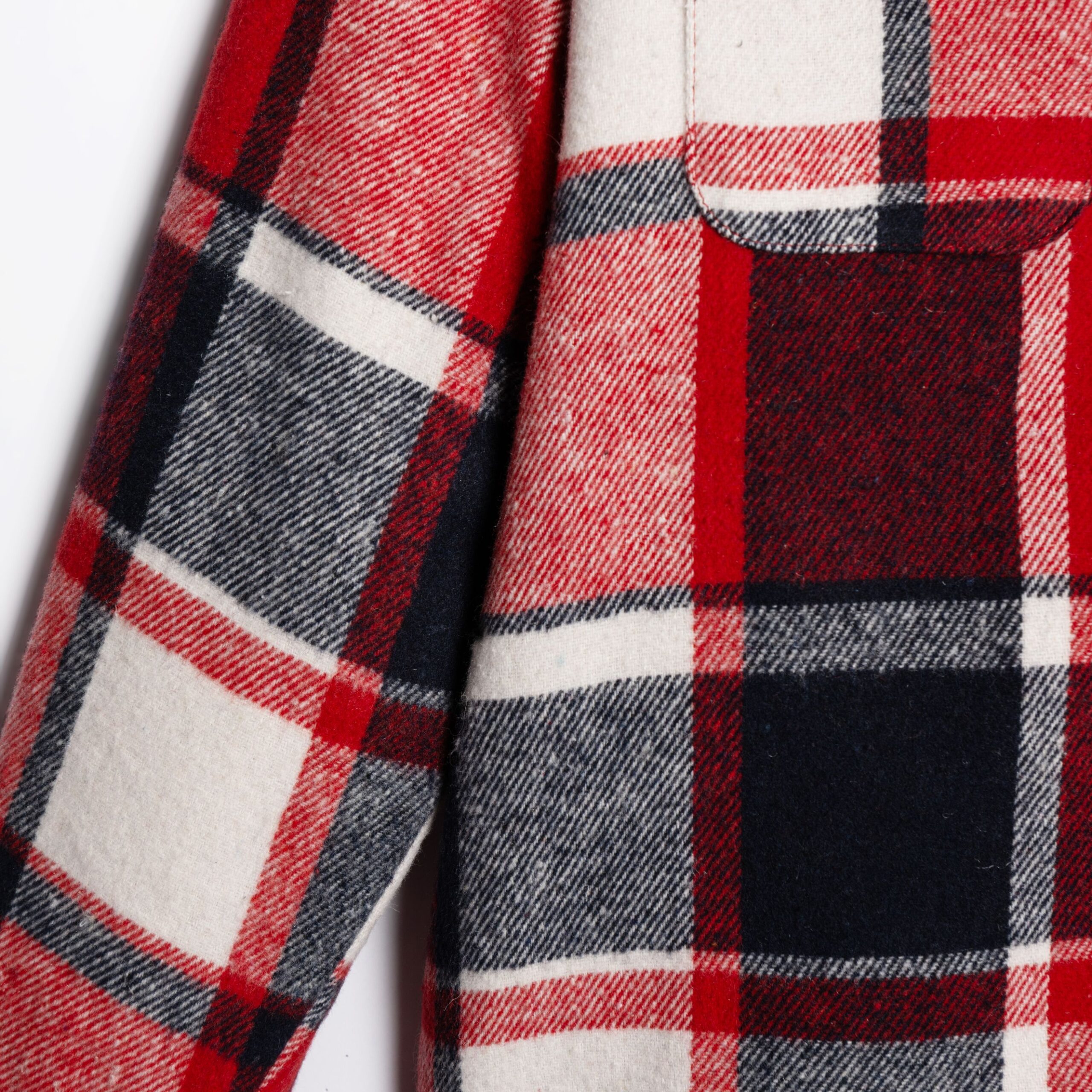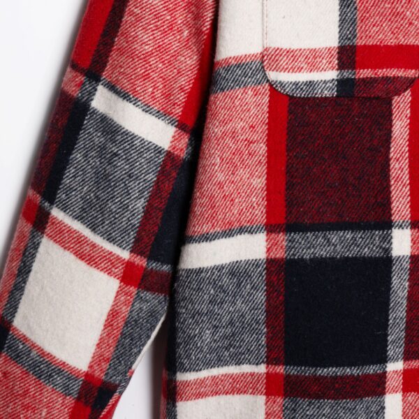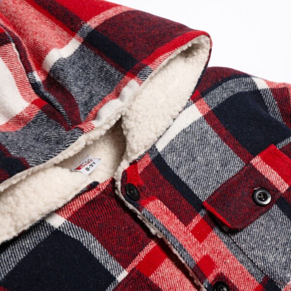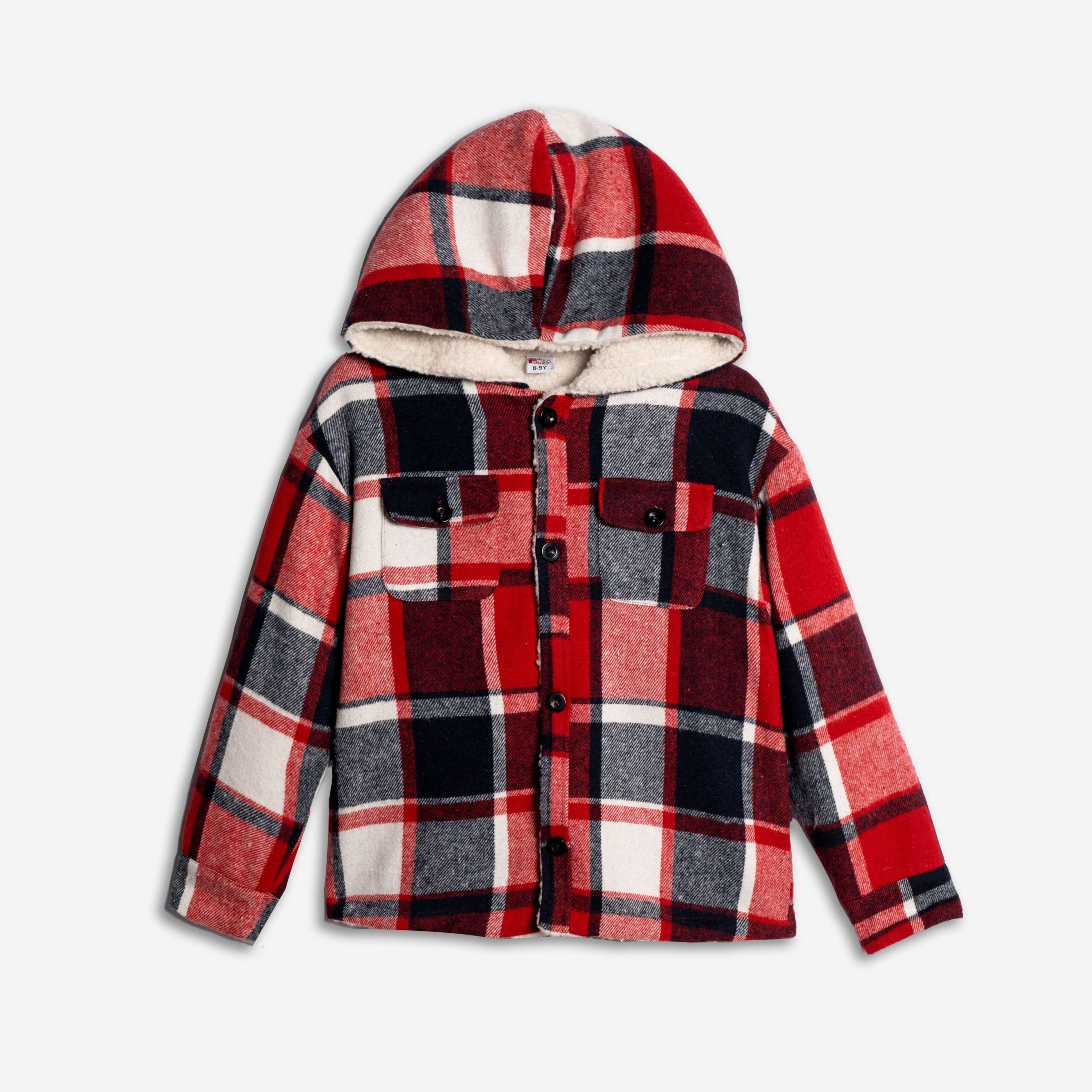 Πουκάμισο με κουκούλα και γούνα καρώ σε χρώμα εκρού-μπλε-κόκκινο για 6-16 χρονών αγόρι. 100% POLYESTER