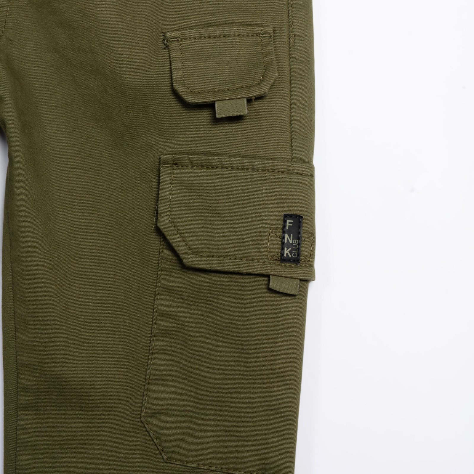 Παντελόνι καμπαρντίνα λύκρα cargo σε χρώμα olive nut για 6-16 χρονών αγόρι. 98% COTTON-2% ELASTAN