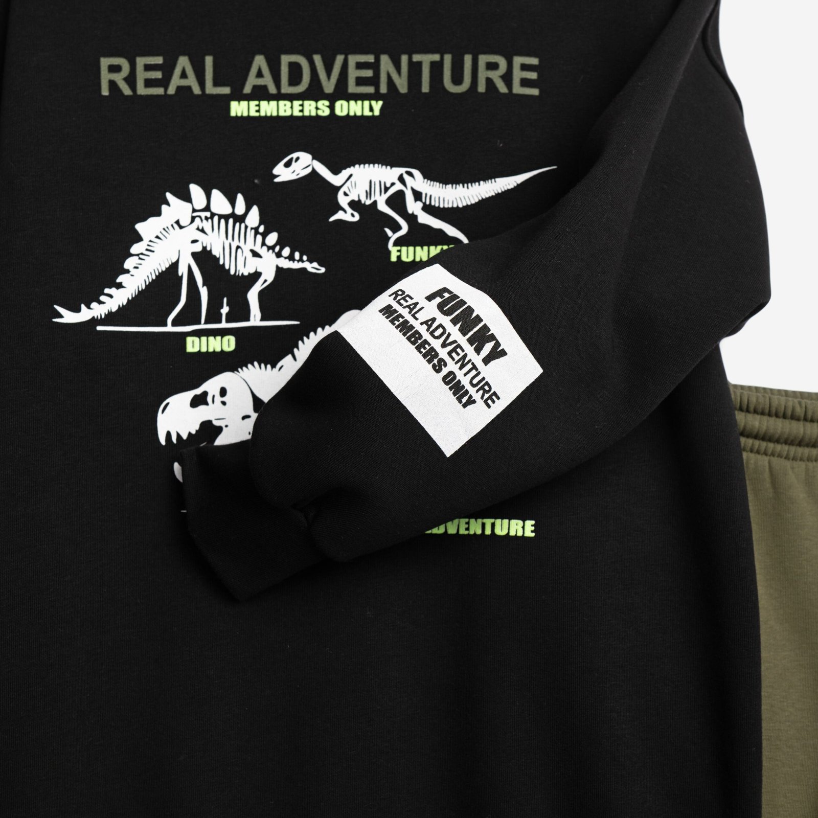 Φόρμα φούτερ με τύπωμα(δεινόσαυρούς) για αγόρι 6-16 χρονών σε χρώμα μαύρο/χακί. 65% COTTON-35% POLYESTER
