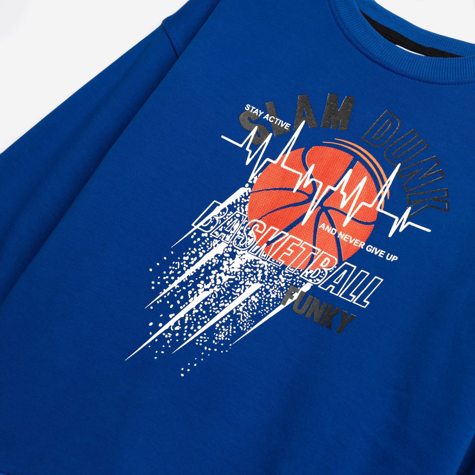 Φόρμα φούτερ με τύπωμα (μπάλα μπάσκετ) για αγόρι 6-16 χρονών σε χρώμα ρουά/μαύρο. 65% COTTON-35% POLYESTER