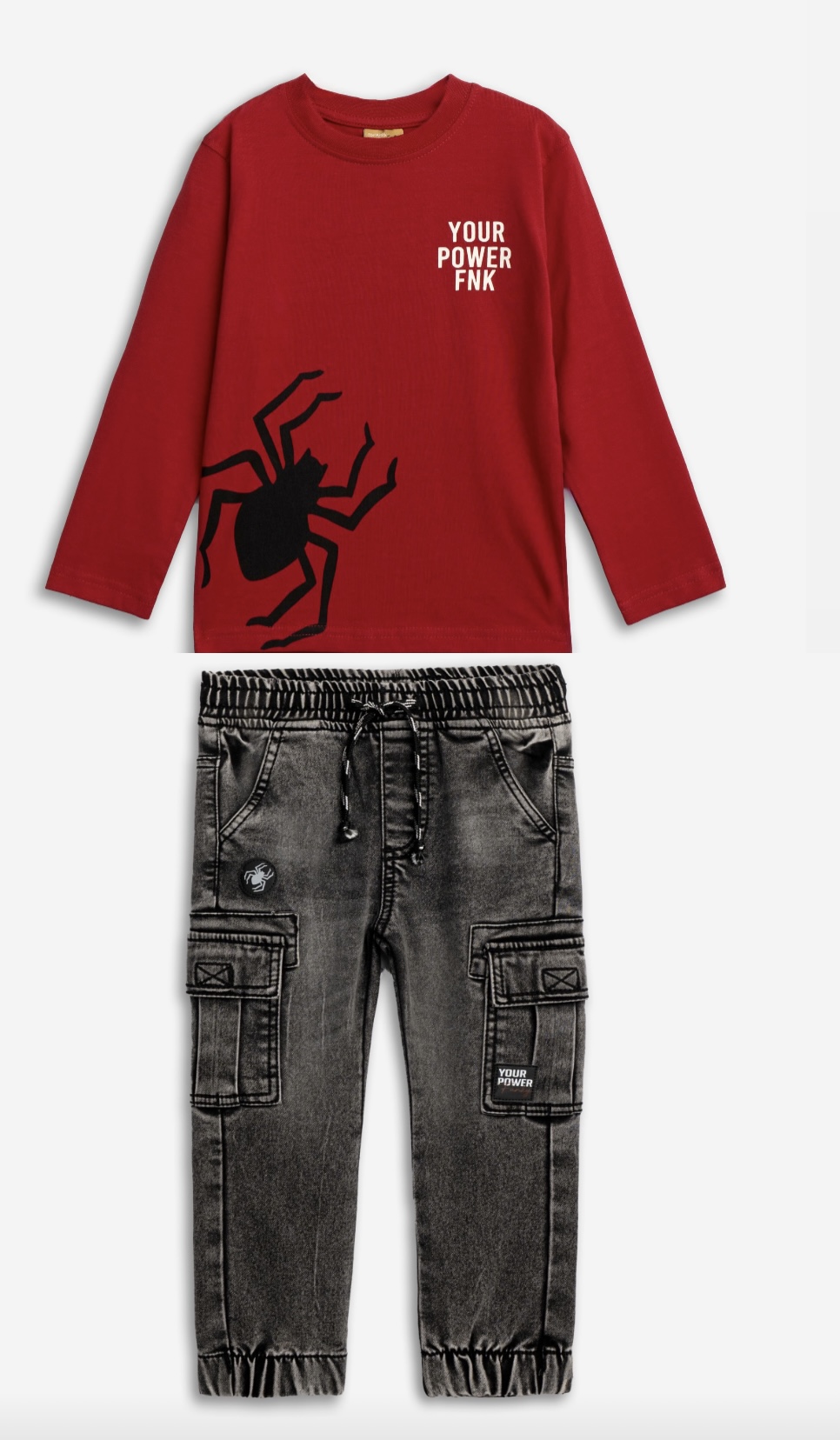 226-306114-1 Funky Σετ μπλούζα παντελόνι τζιν cargo αγόρι κόκκινο μαύρο