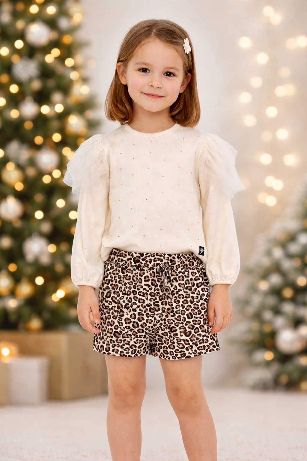 ΑρχικήΧειμερινά226-506122-1 Funky Σετ μπλούζα σορτς-φούστα κορίτσι εκρού λεοπάρ