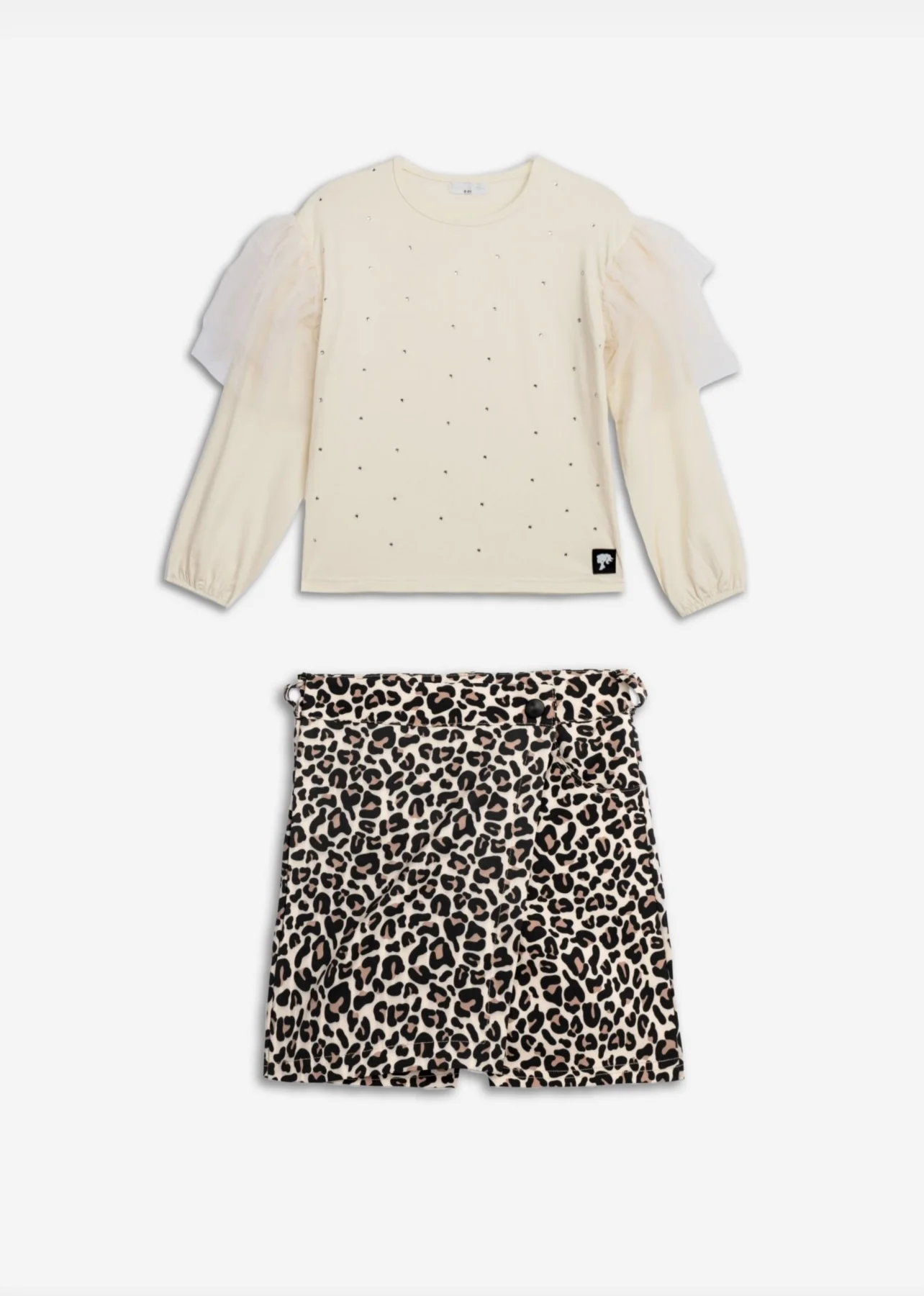 226-506122-1 Funky Σετ μπλούζα σορτς-φούστα κορίτσι εκρού λεοπάρ