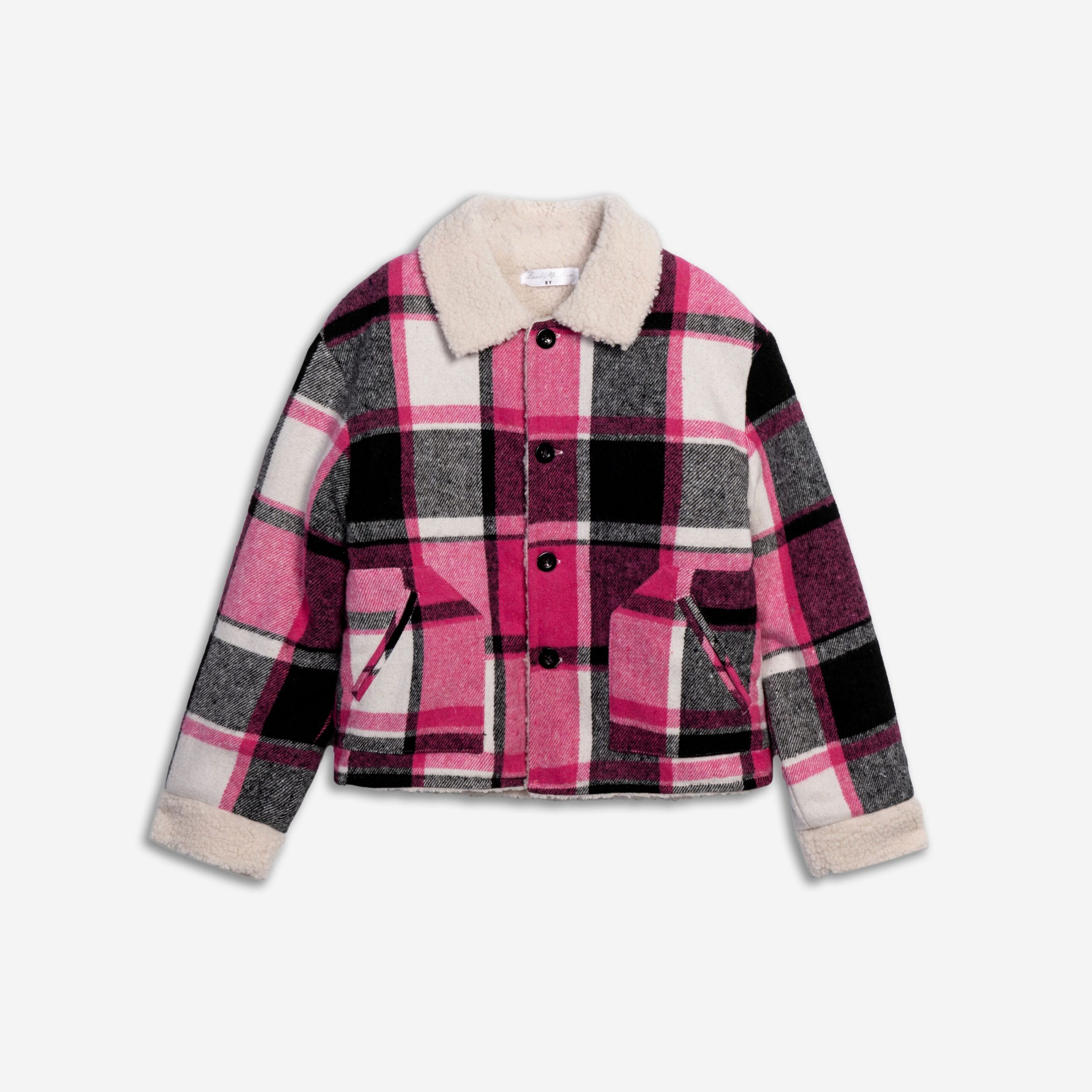 Πουκάμισο καρώ με προβατάκι για κορίτσι 6-16 χρονών σε χρώμα εκρού-μαύρο-φουξ. 100% POLYESTER