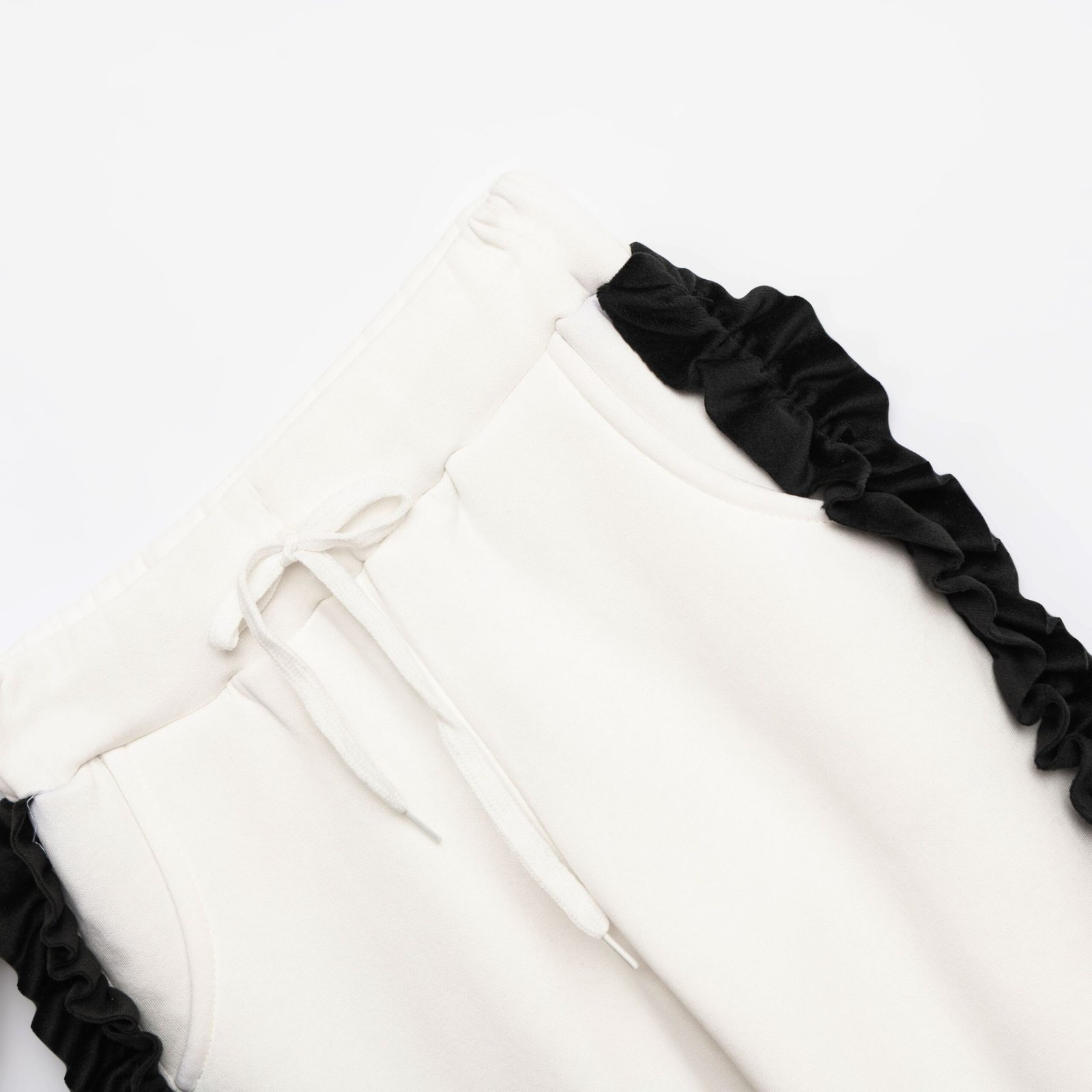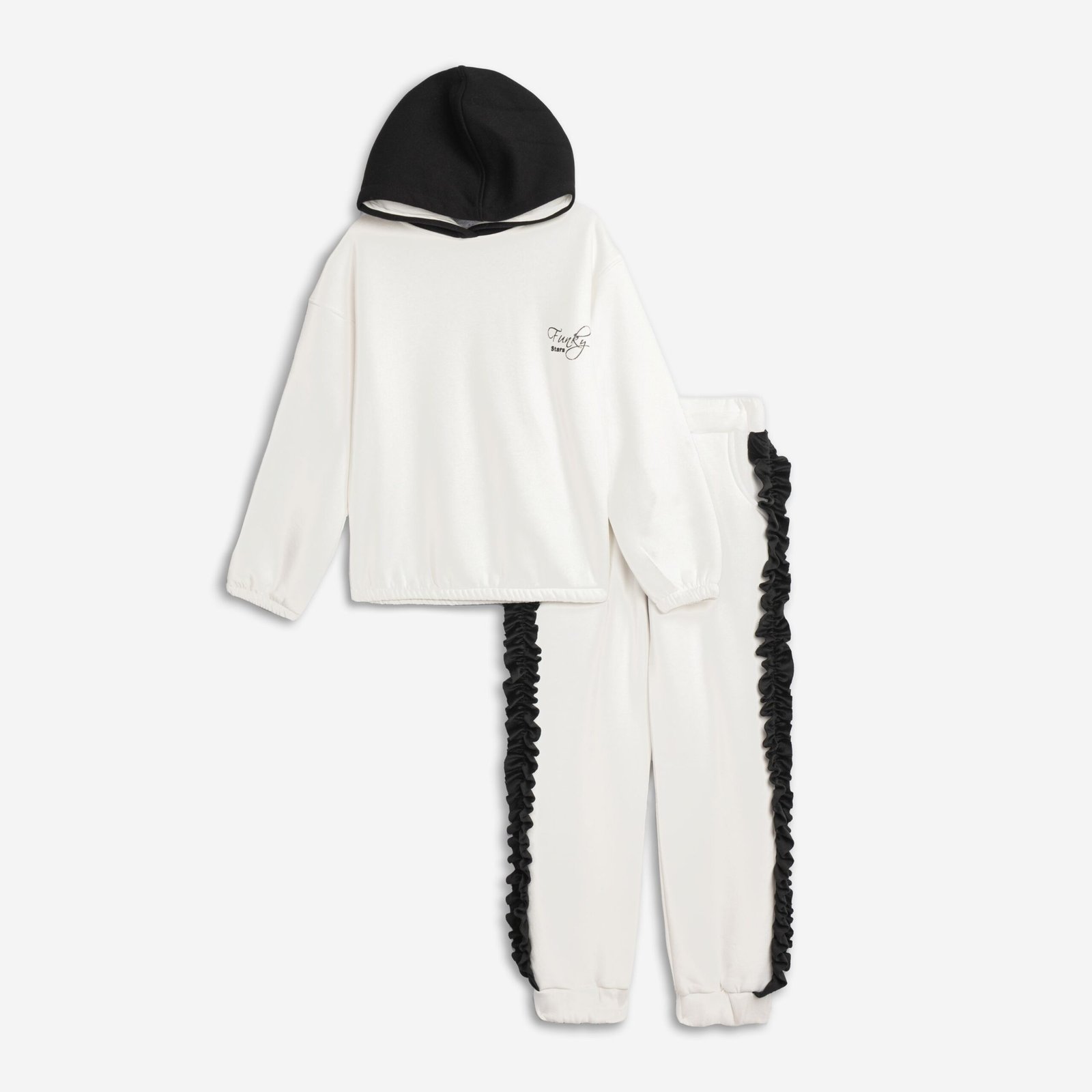 Φόρμα φούτερ με κουκούλα και φραμπαλά στο παντελόνι για κορίτσι 6-16 χρονών σε χρώμα εκρού-μαυρό/εκρού-μαύρο. 65% COTTON-35% POLYESTER